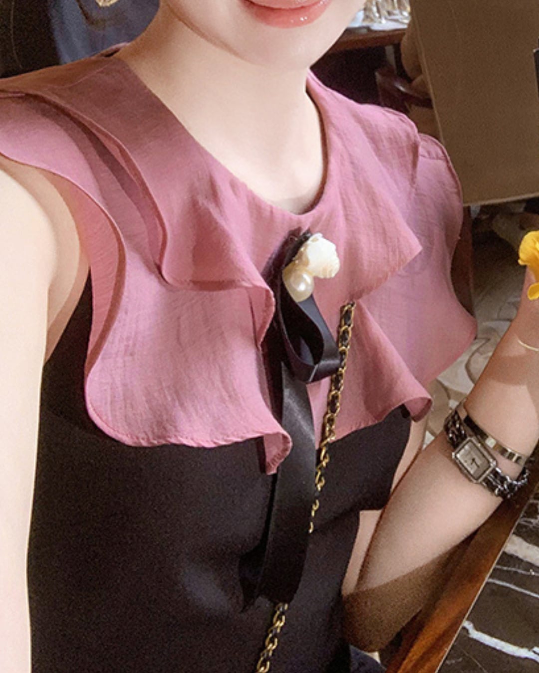 フロントのフラワーリボンがワンポイント.*・゚