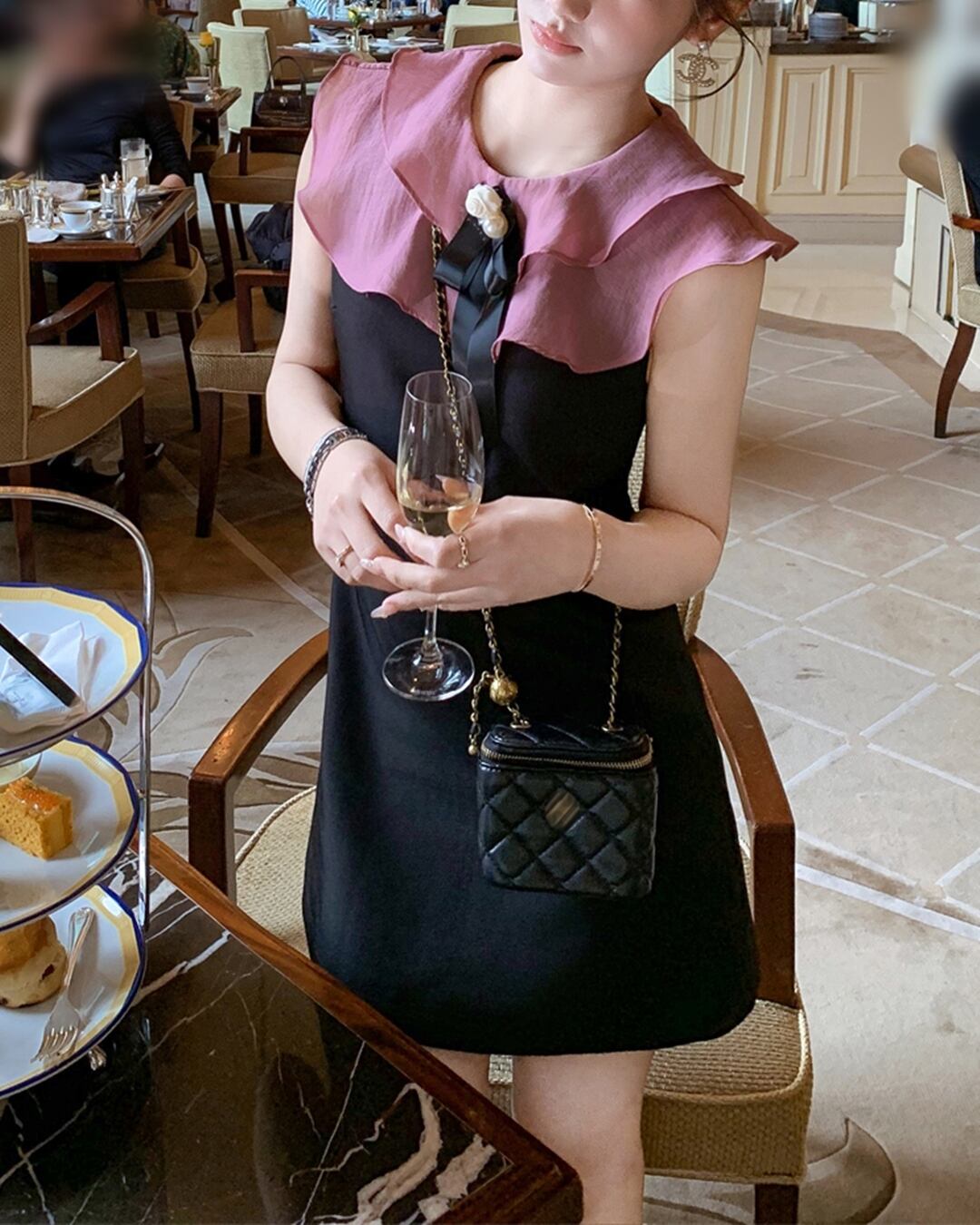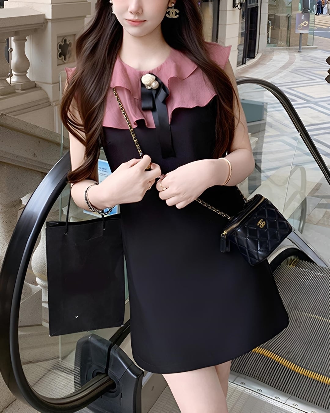 フリルカラーカメリアノースリワンピース 2503041