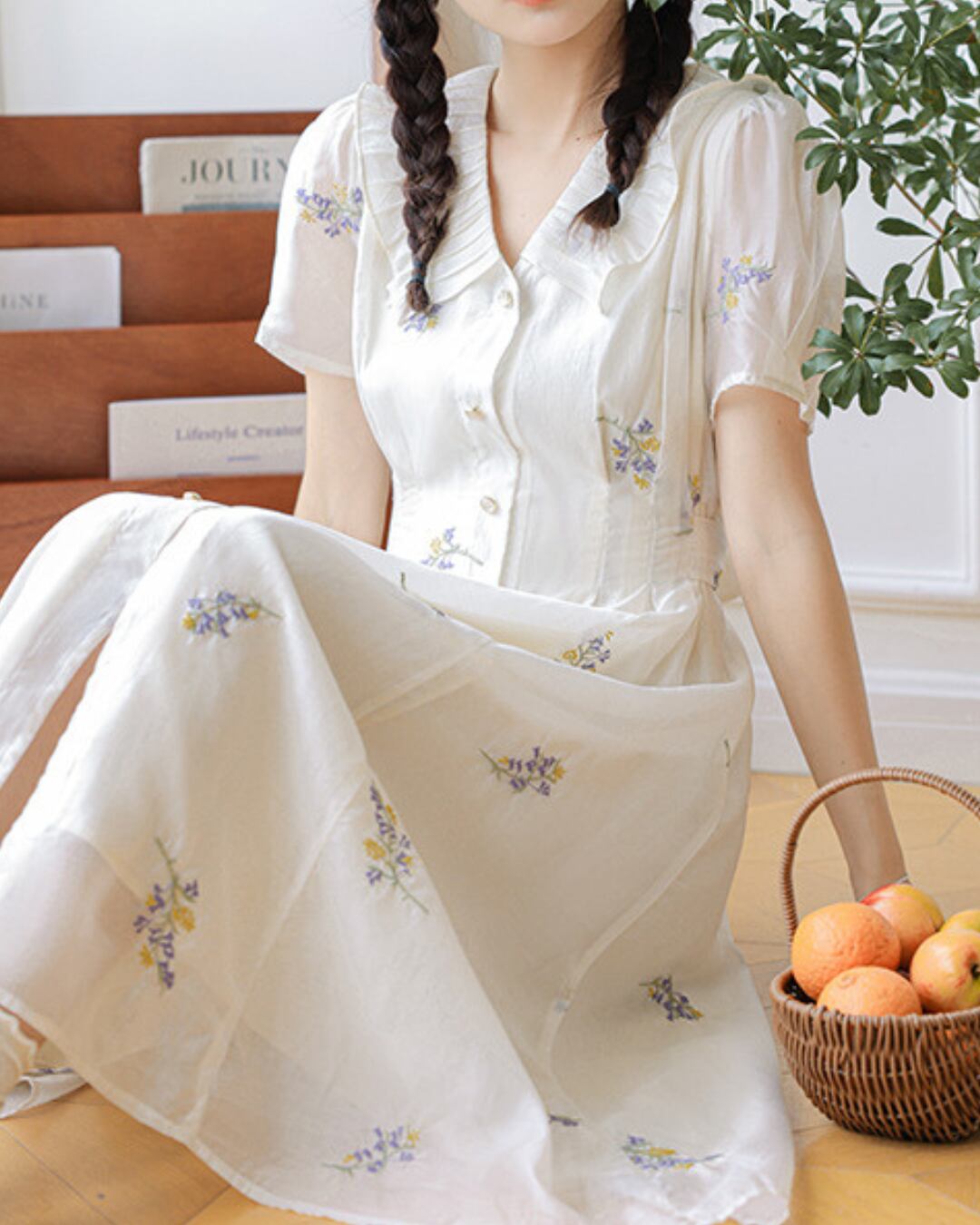 花柄が気分華やぐホワイトカラーのワンピース♡