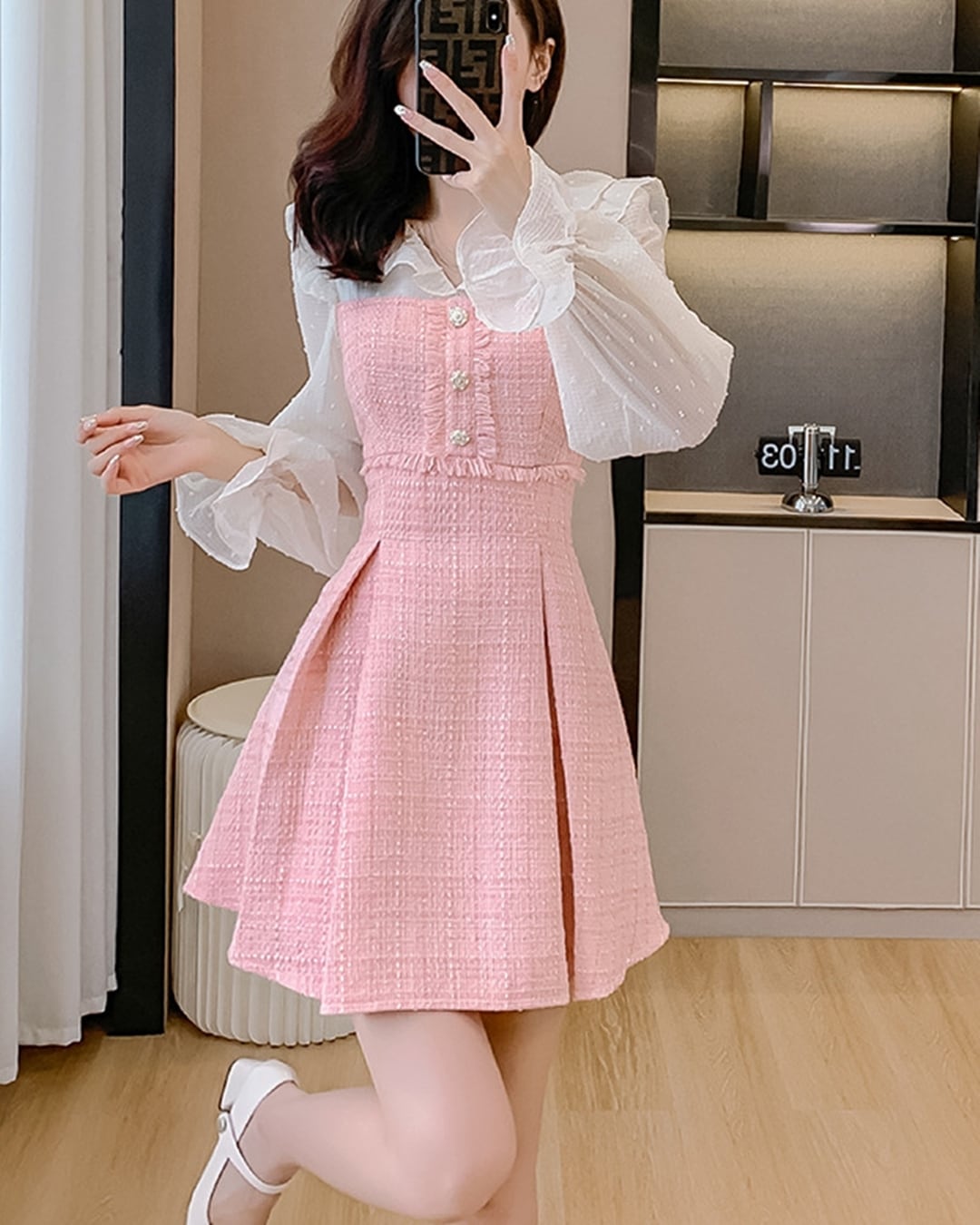 フロントのビジューボタンが華やかさをプラス.*・゚