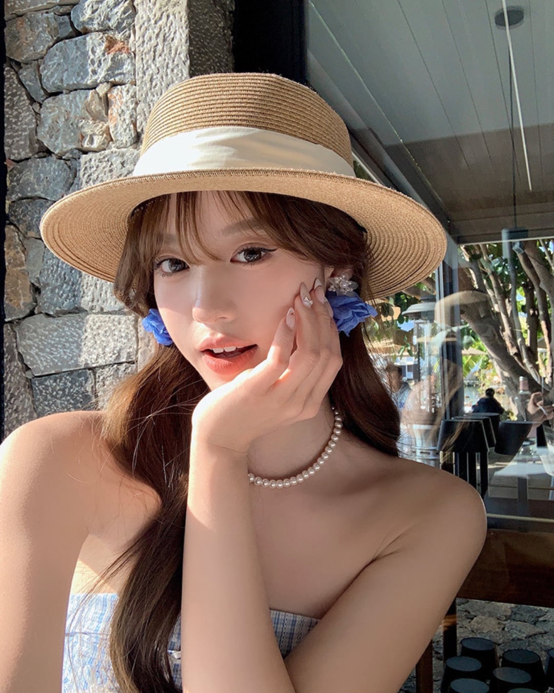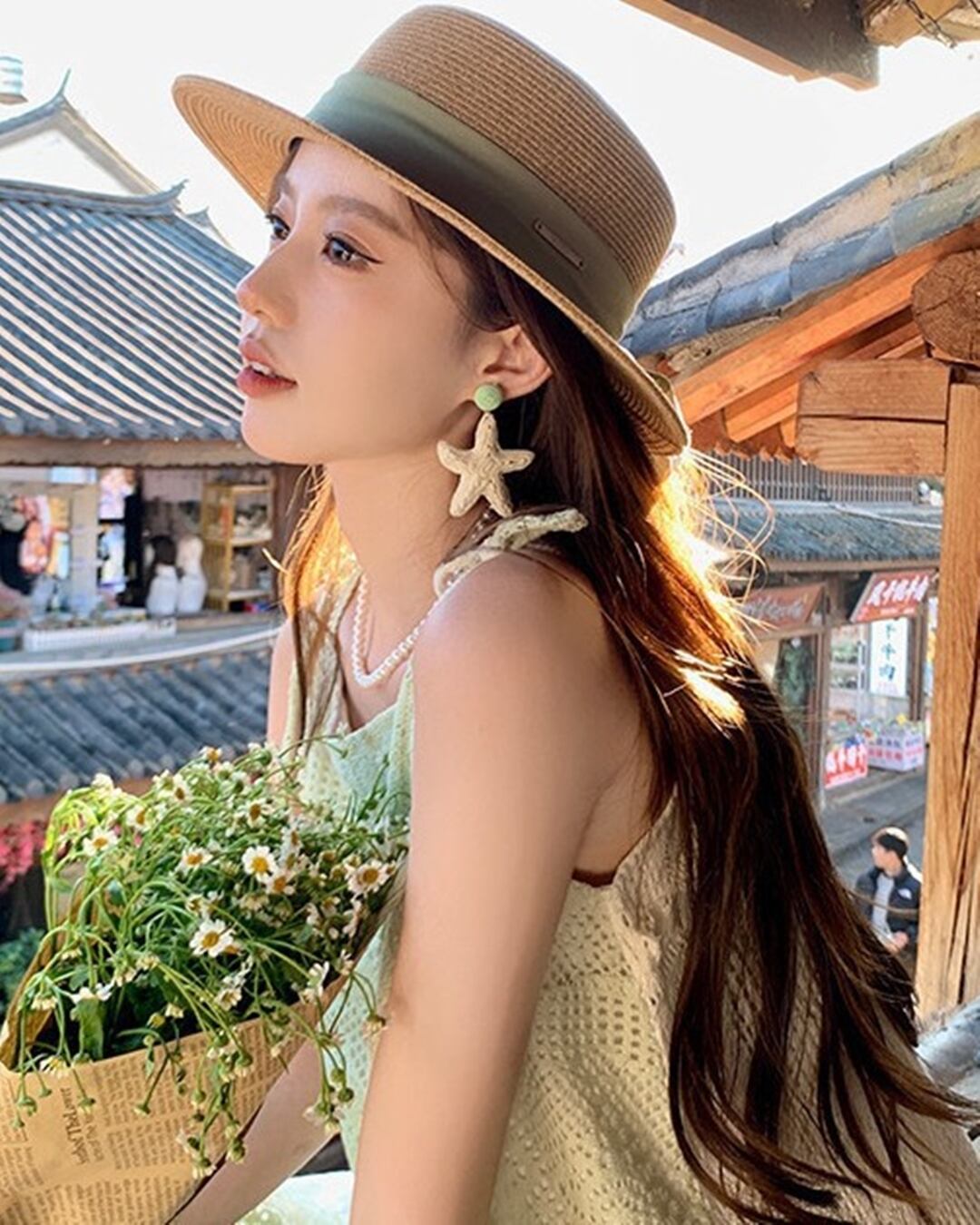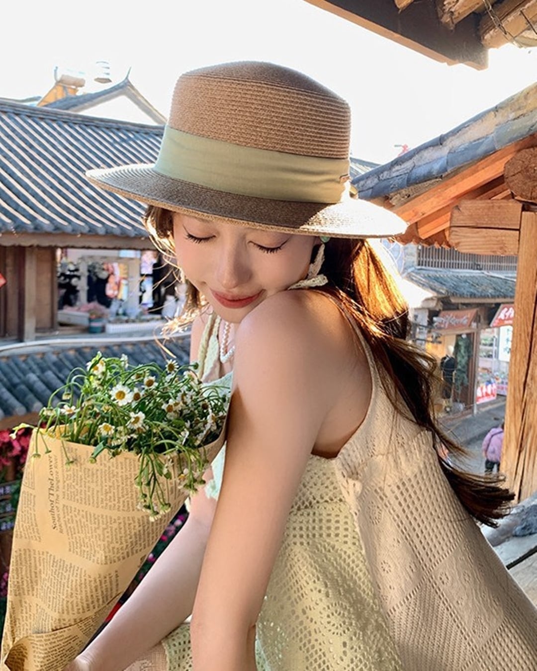 バックリボンフラットトップストローハット(4 colors) 2505038