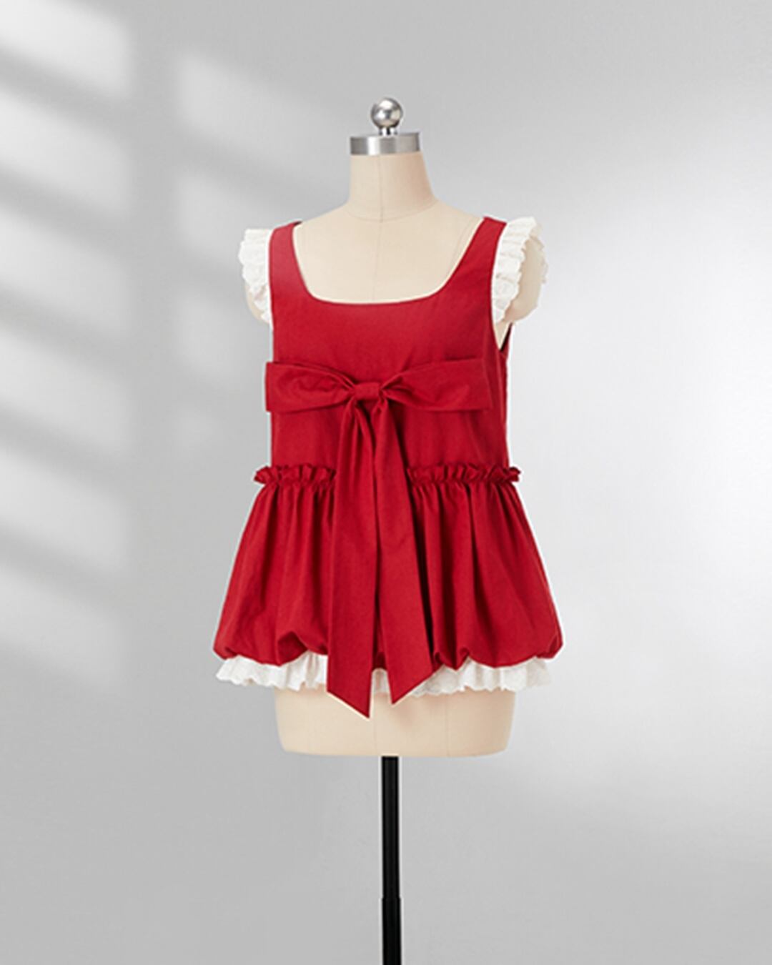 バルーンヘムリボンレッドトップス 2505040