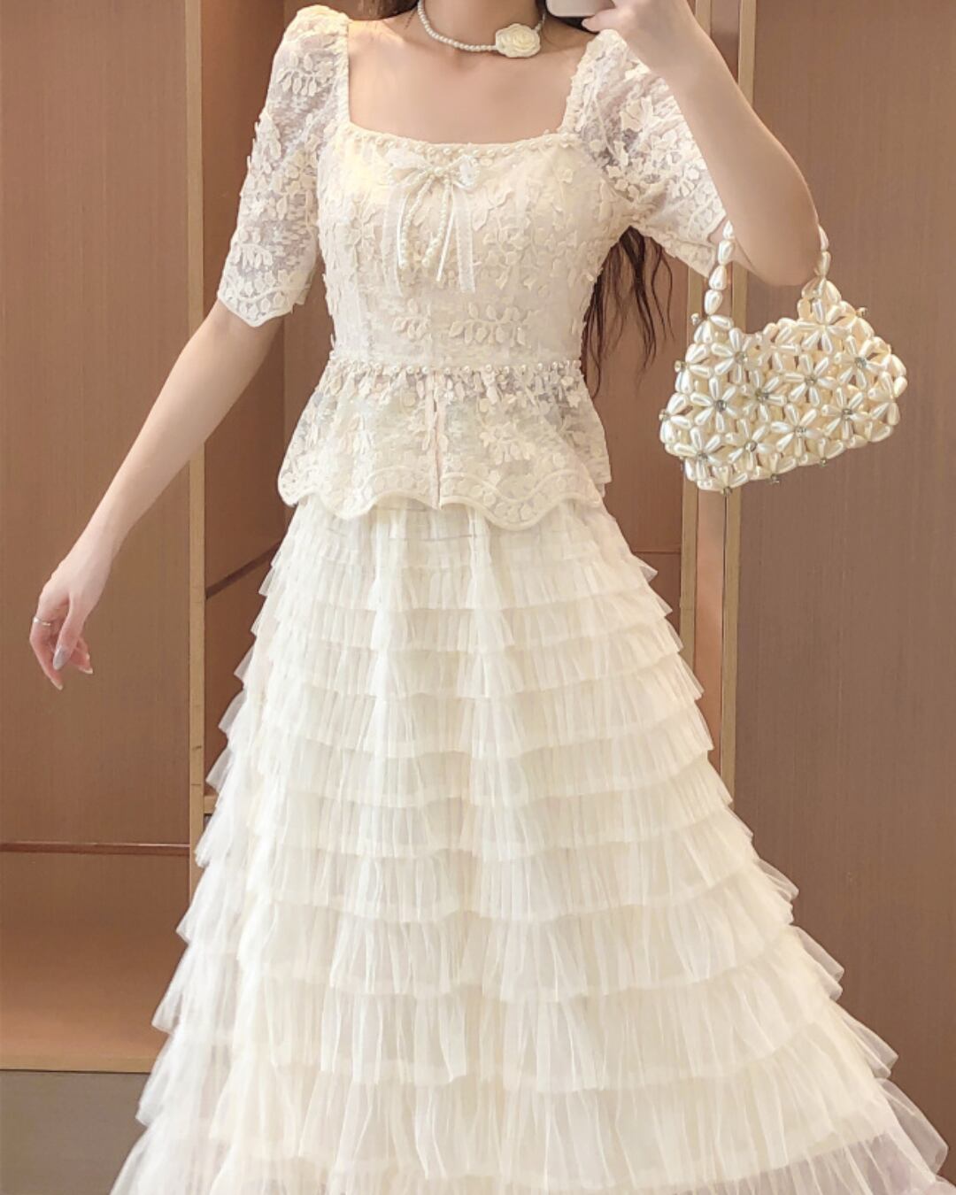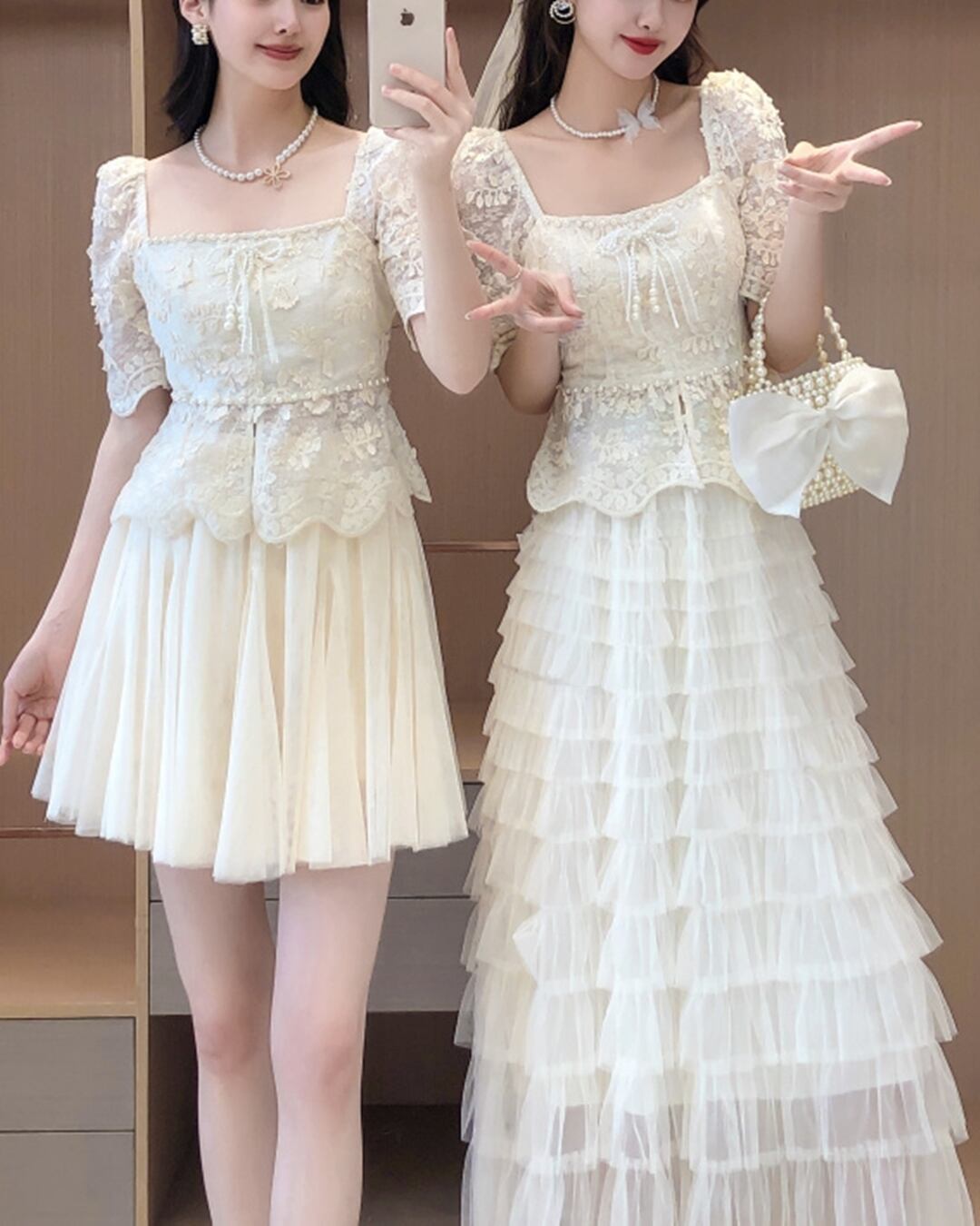 チュールが重ねられた華やかなスカートのセットアップ♡