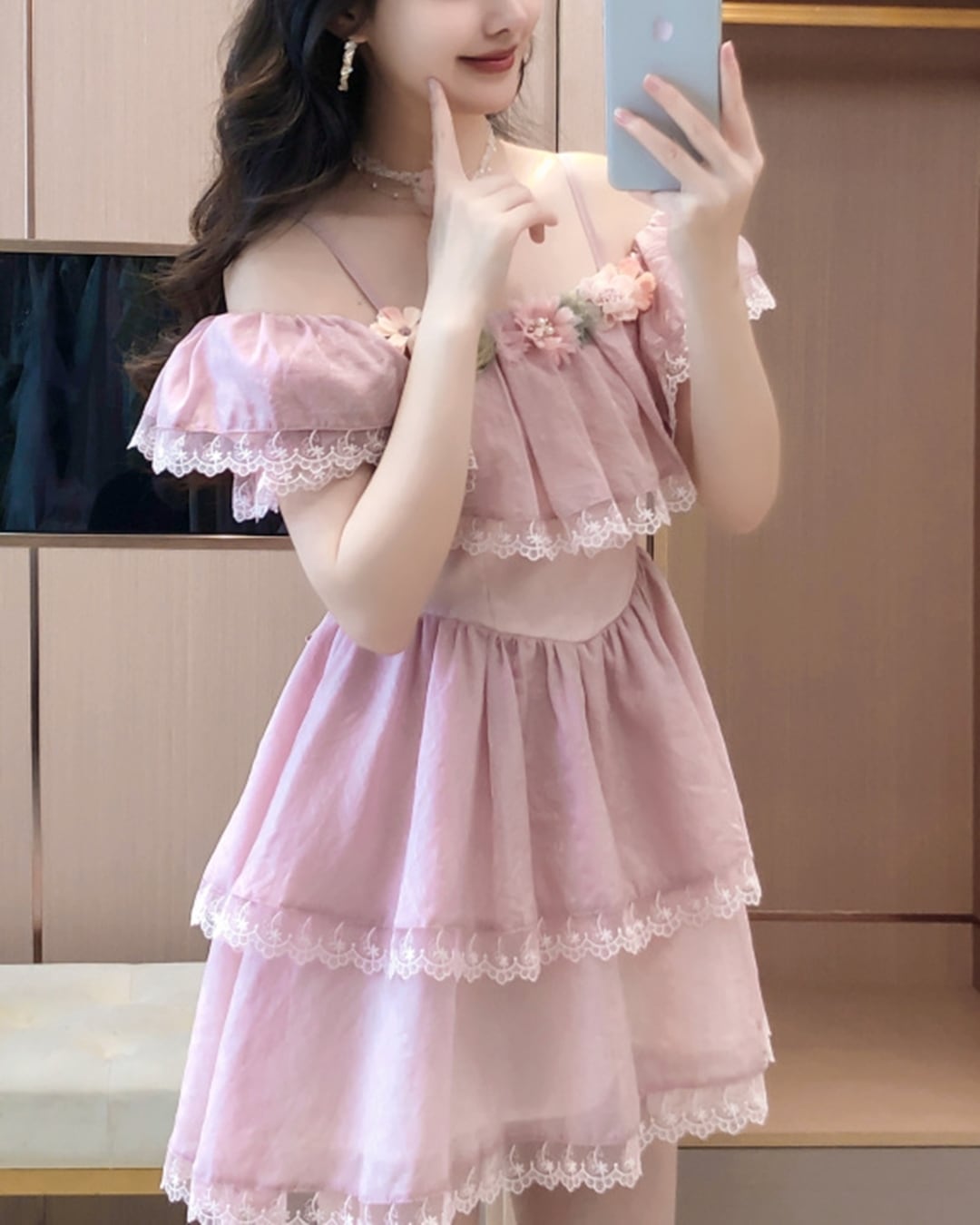 オフショルダーフラワーティアードワンピース(ショート) 2505056