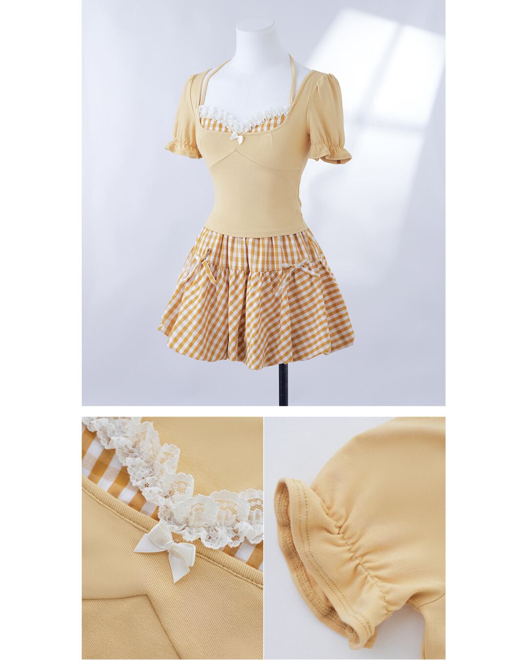 フェイクツーピースチェックトップス(2 colors) 2505068