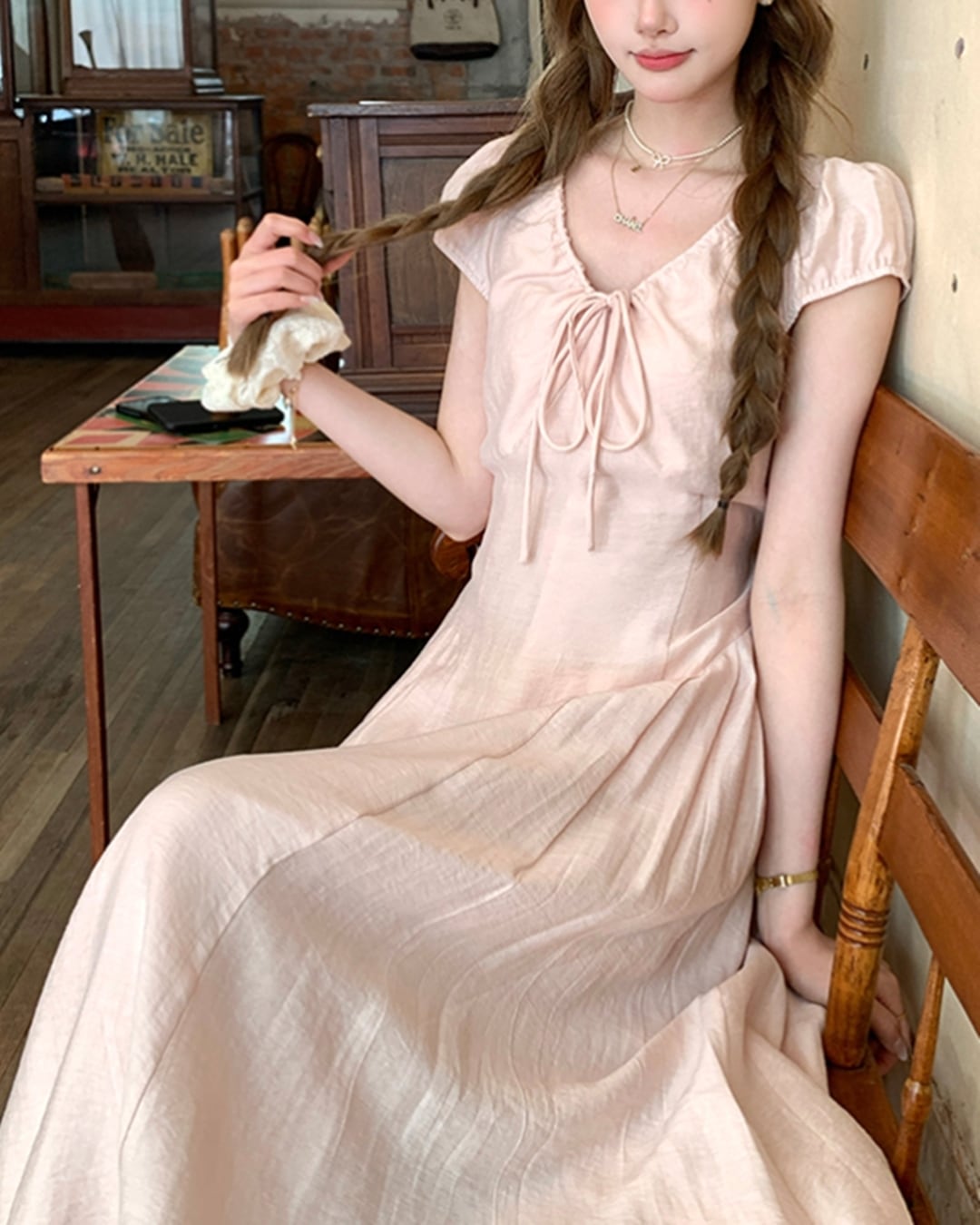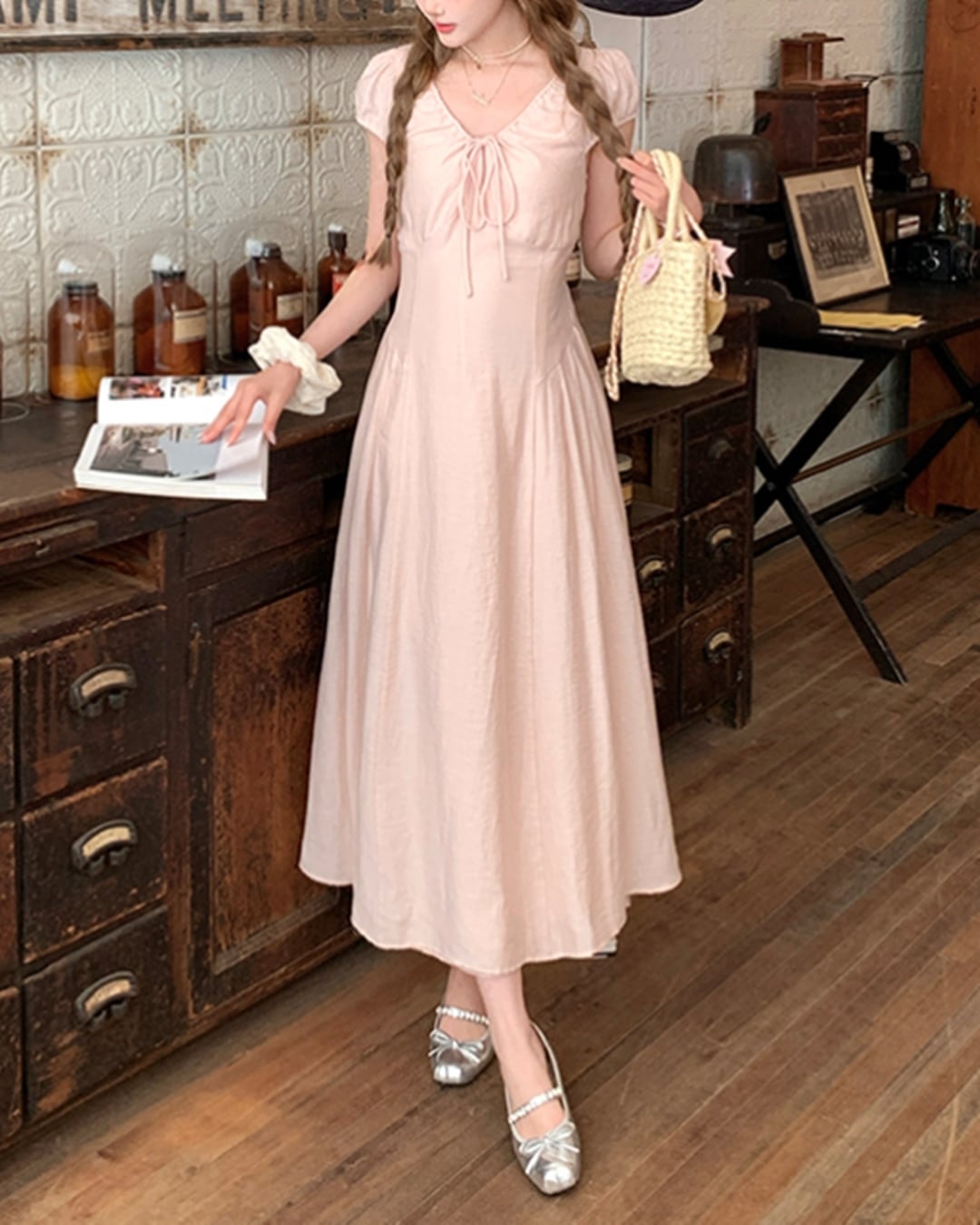 Vネック×Aラインのシルエットが魅力のワンピース♡