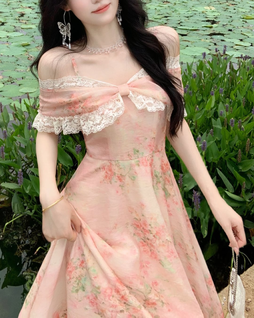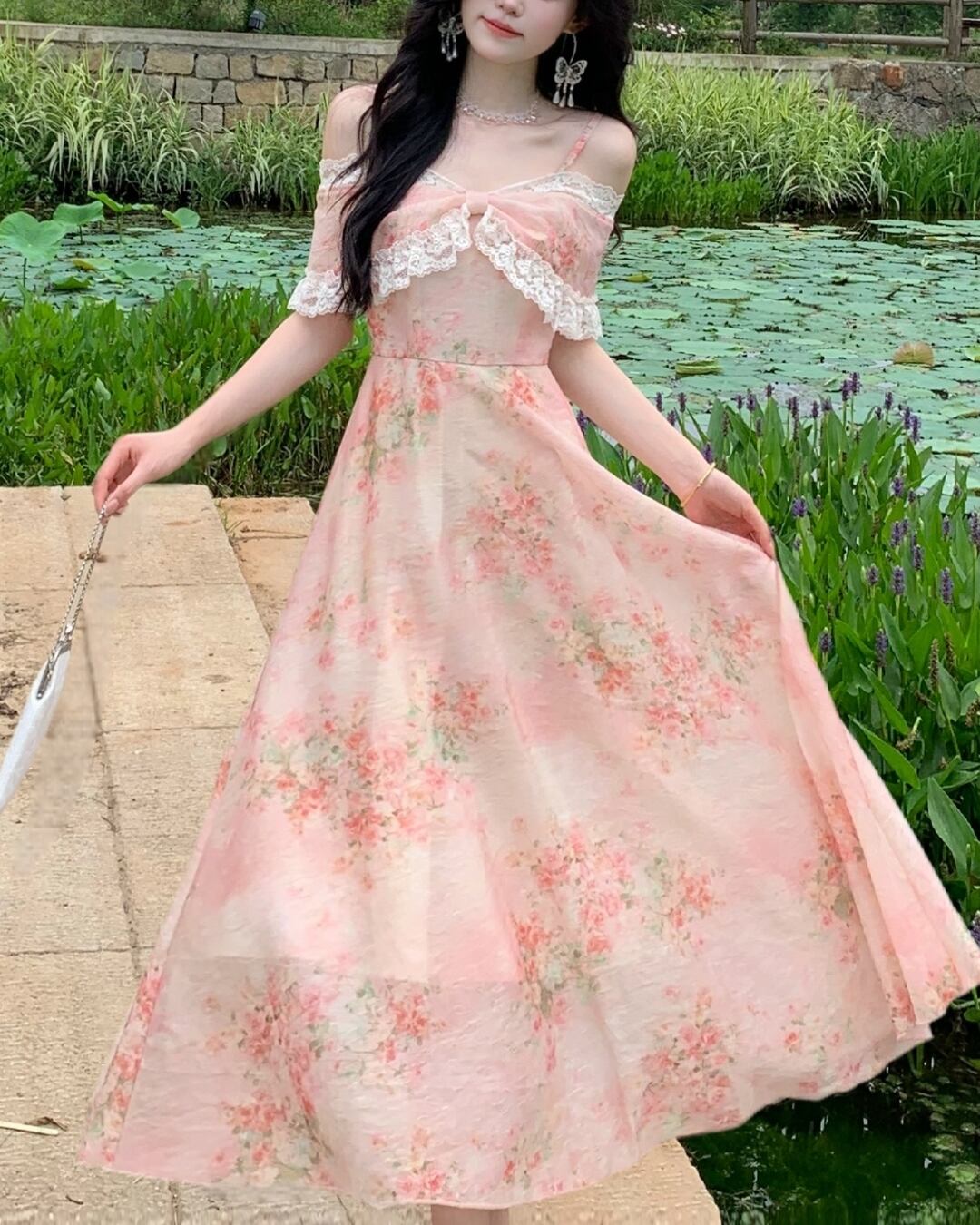 ロマンチックフラワーオフショルリボンワンピース 2506124