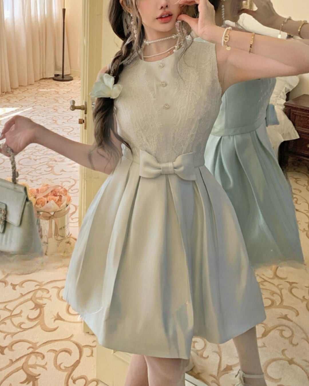 ウエストリボンフレンチレースワンピース(ブルー) 2506144