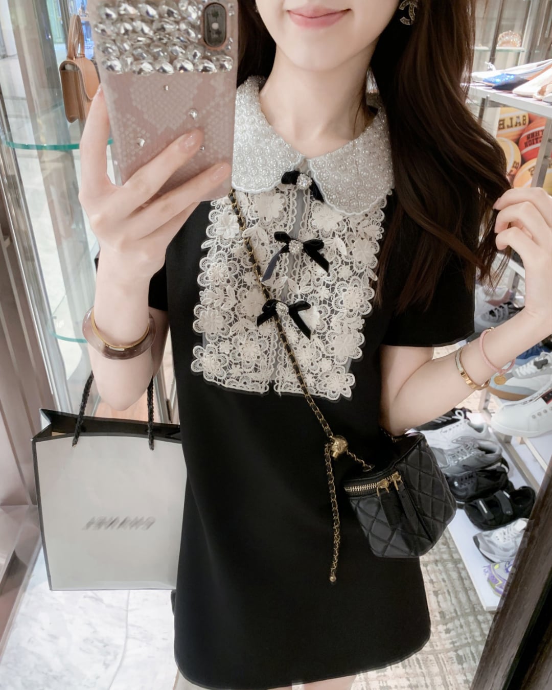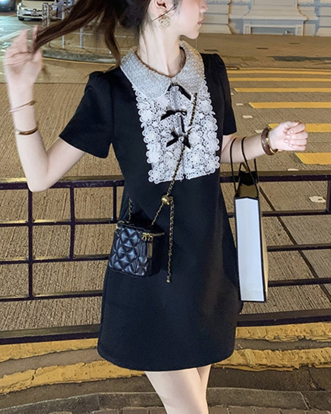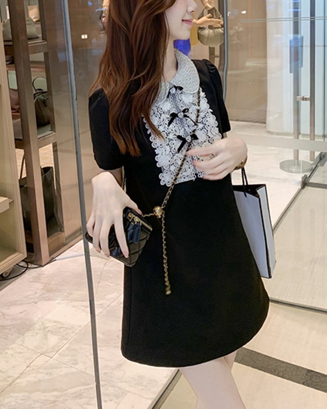 フラワーレースが主役のブラックワンピース♡