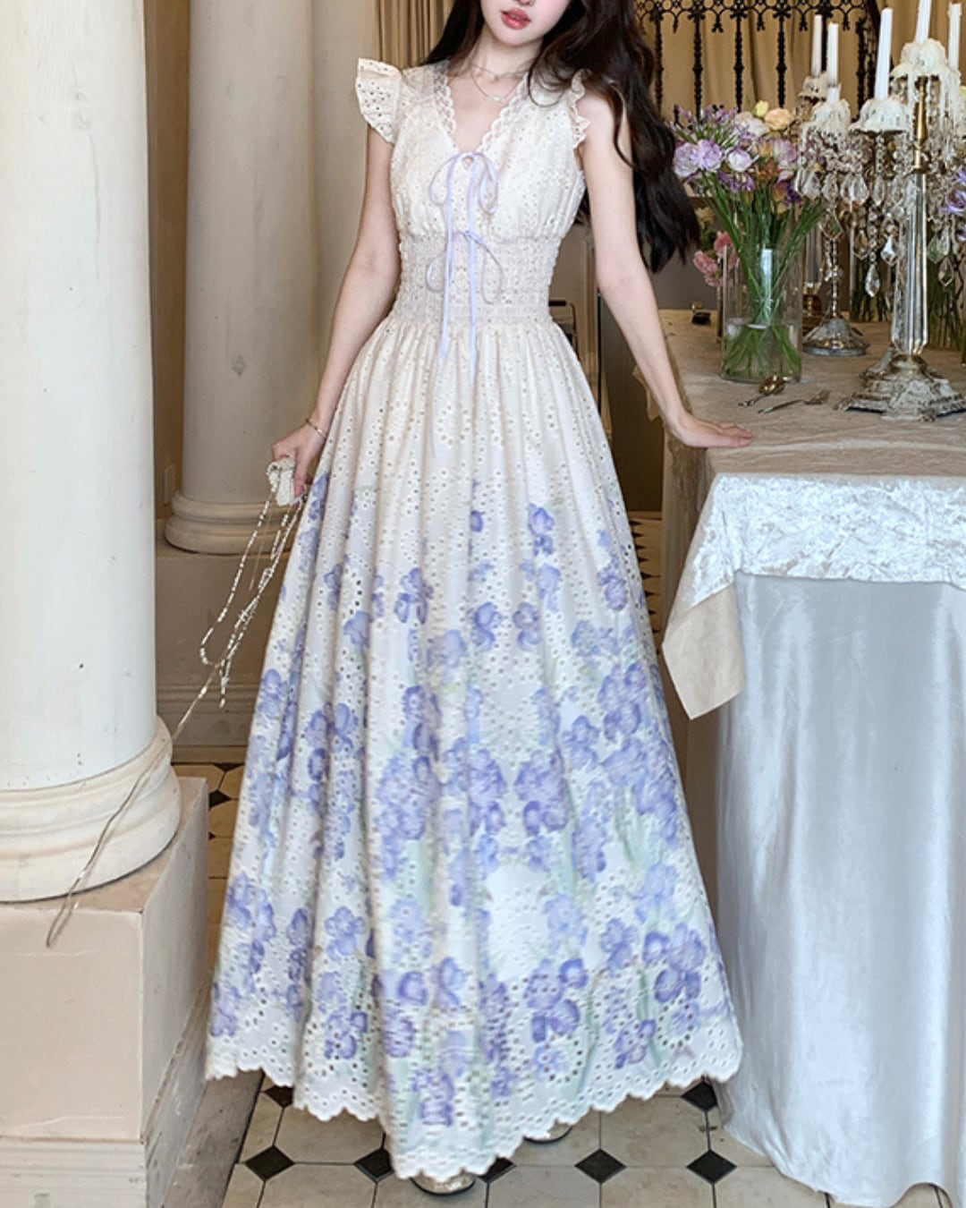 フライングスリーブとレースディテールがフェミニンさをプラス⑅⃛