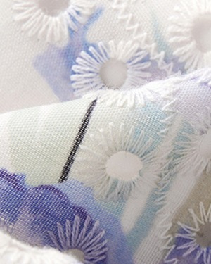 爽やかなブルーに咲き誇るフラワーパターンが