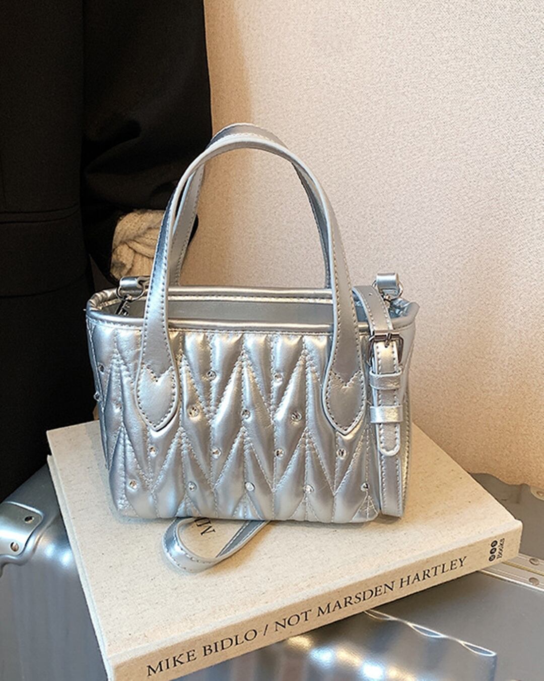 ラインストーンキルティングスクエアバッグ(4 colors) 25WP07020