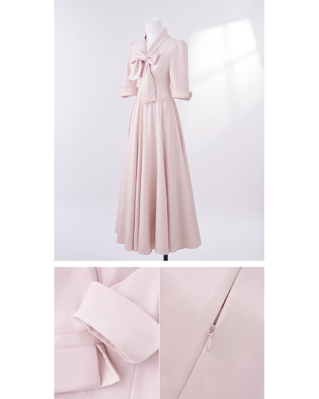 上品なボウタイリボンとドレープ感たっぷりの