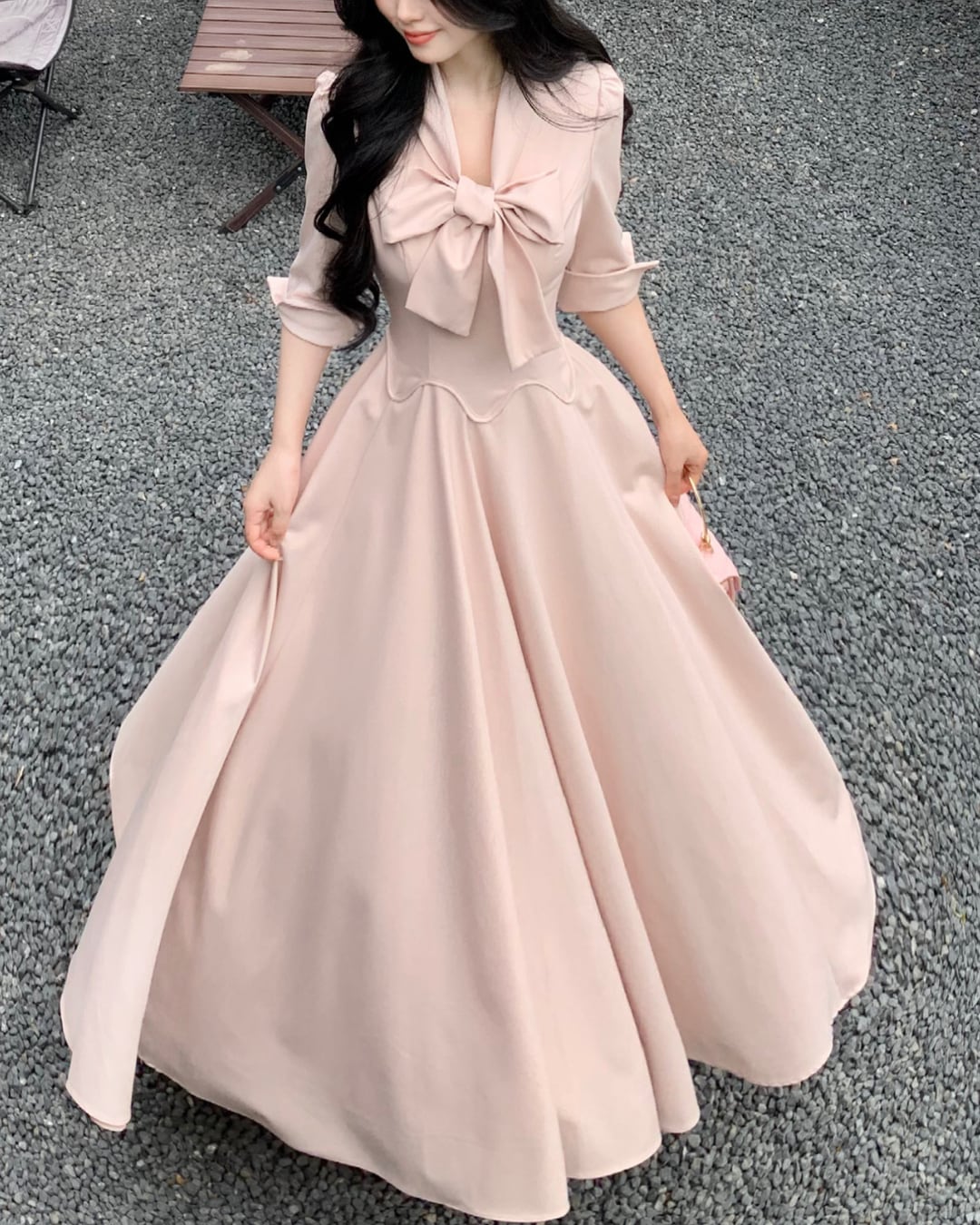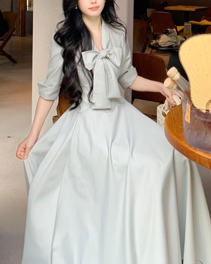 ボウタイリボンロングフレアワンピース(2 colors) 2507028