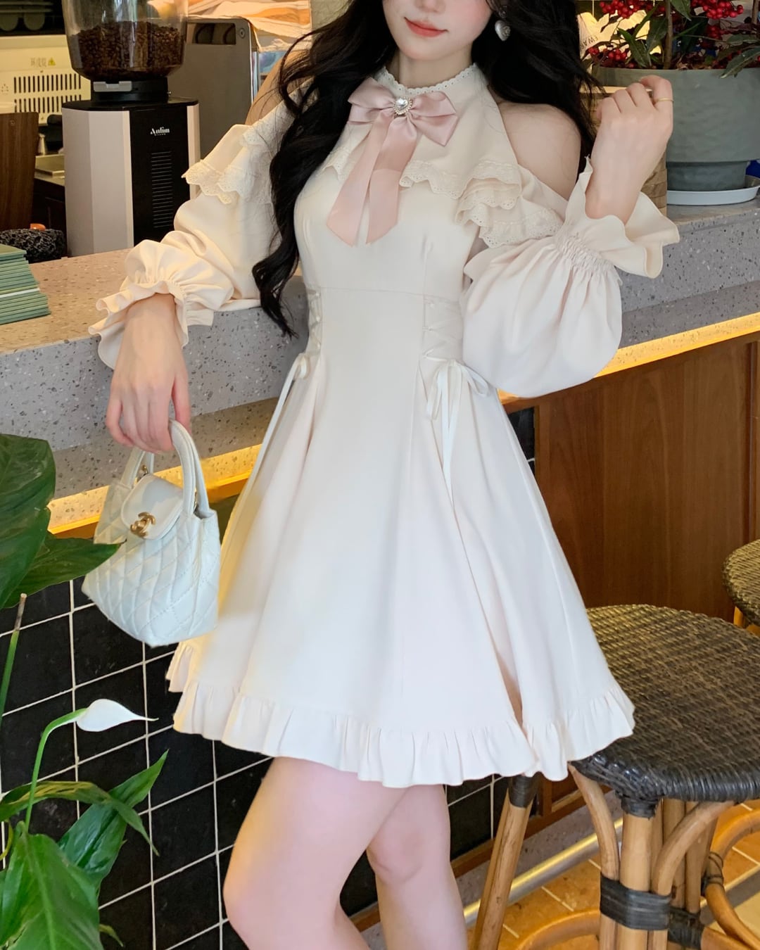 ミルキーオフショルダーリボンワンピース 25WP07034