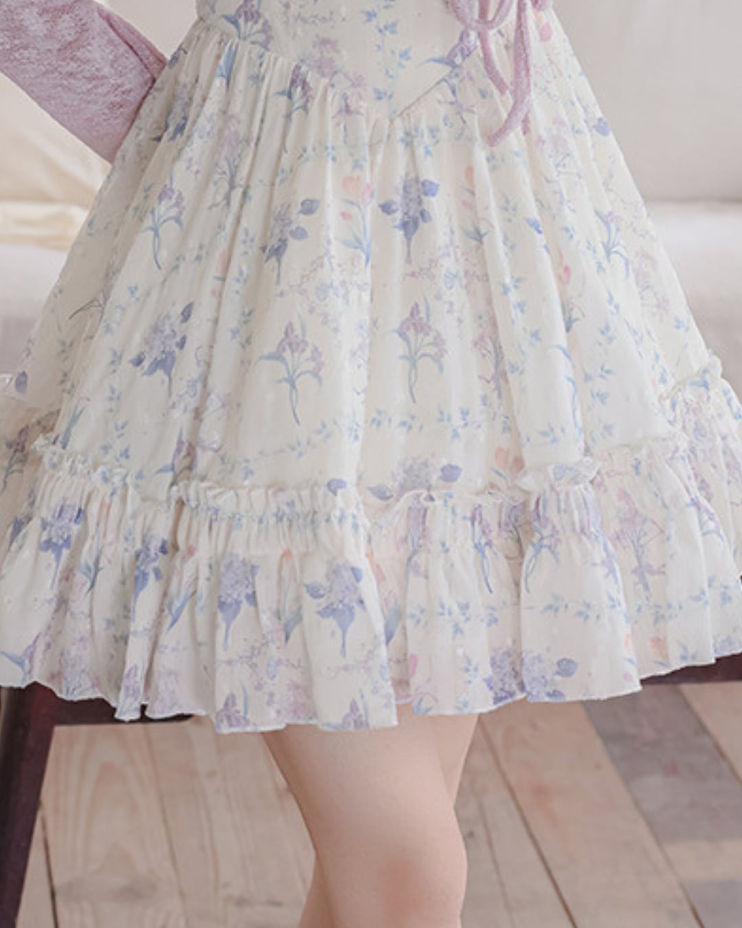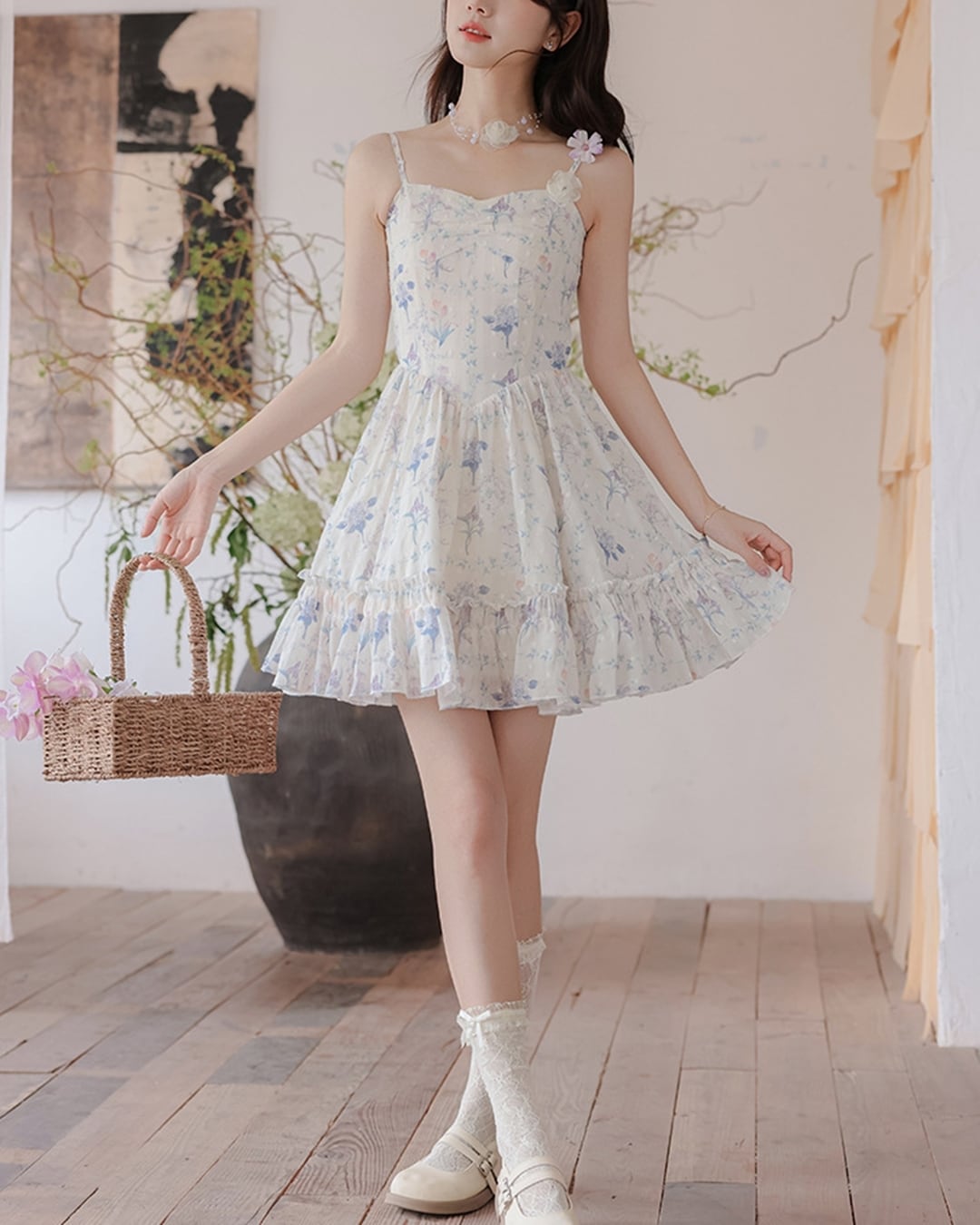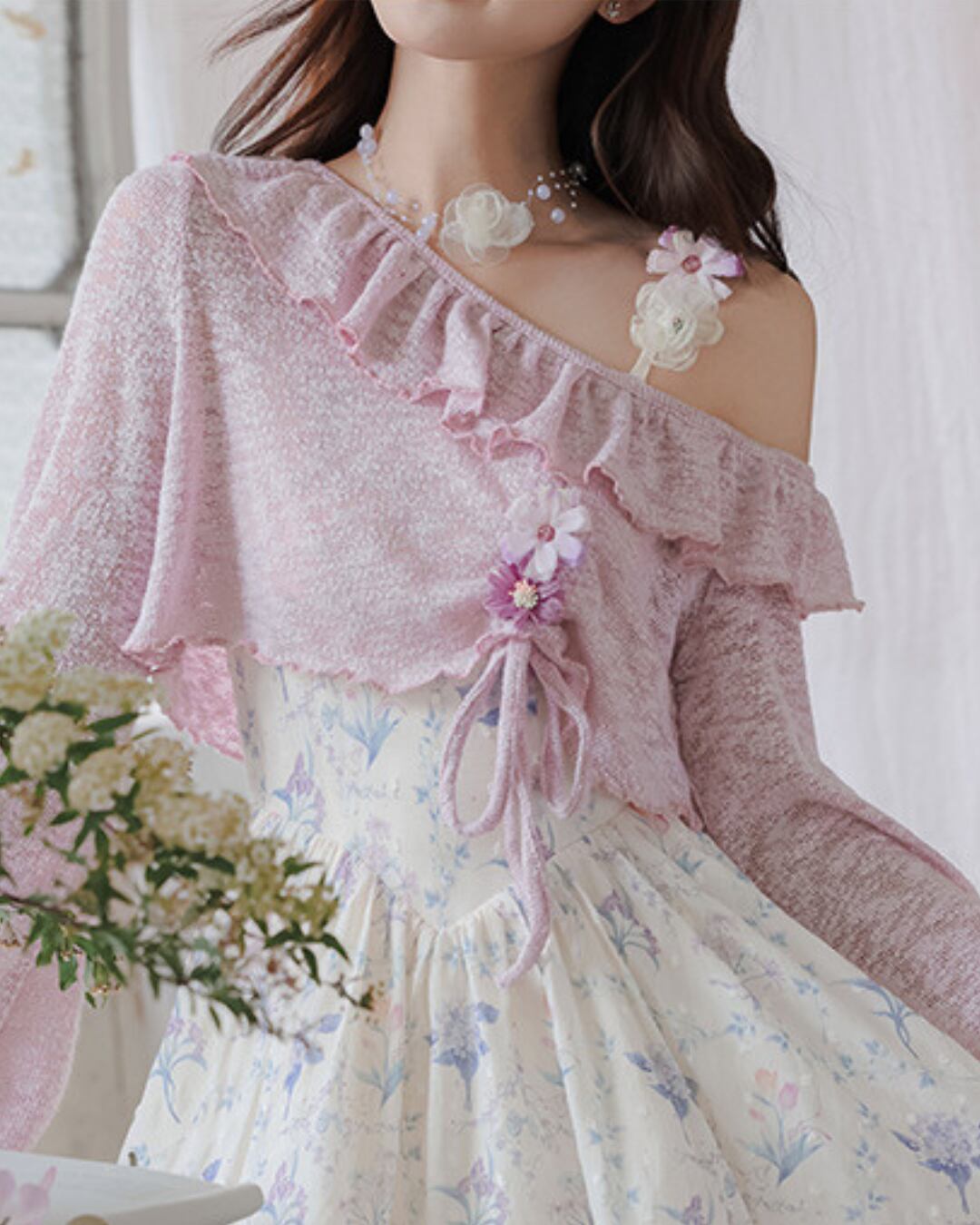 ブルーフラワーワンピース&フリルショートトップスセット 2508024