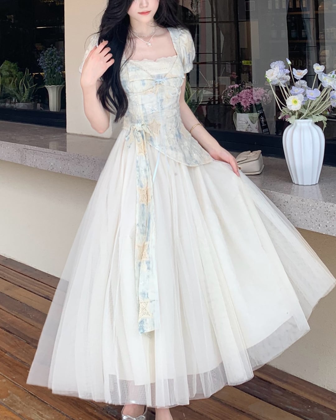 ブルーフラワースパンコールチュールワンピース(ロング) 2508029