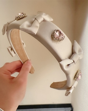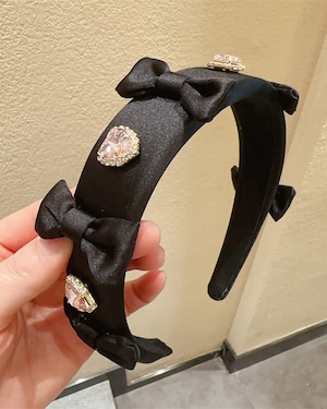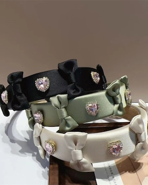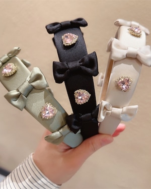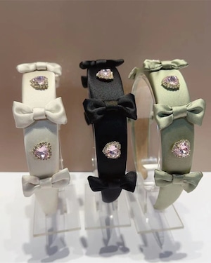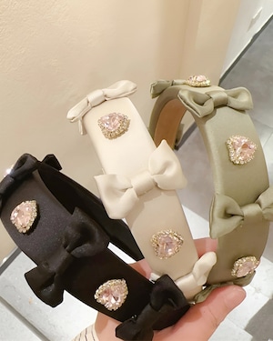 【♡お届け最短3日♡ ホワイト1点】ハートビジューリボンカチューシャ(3 colors)