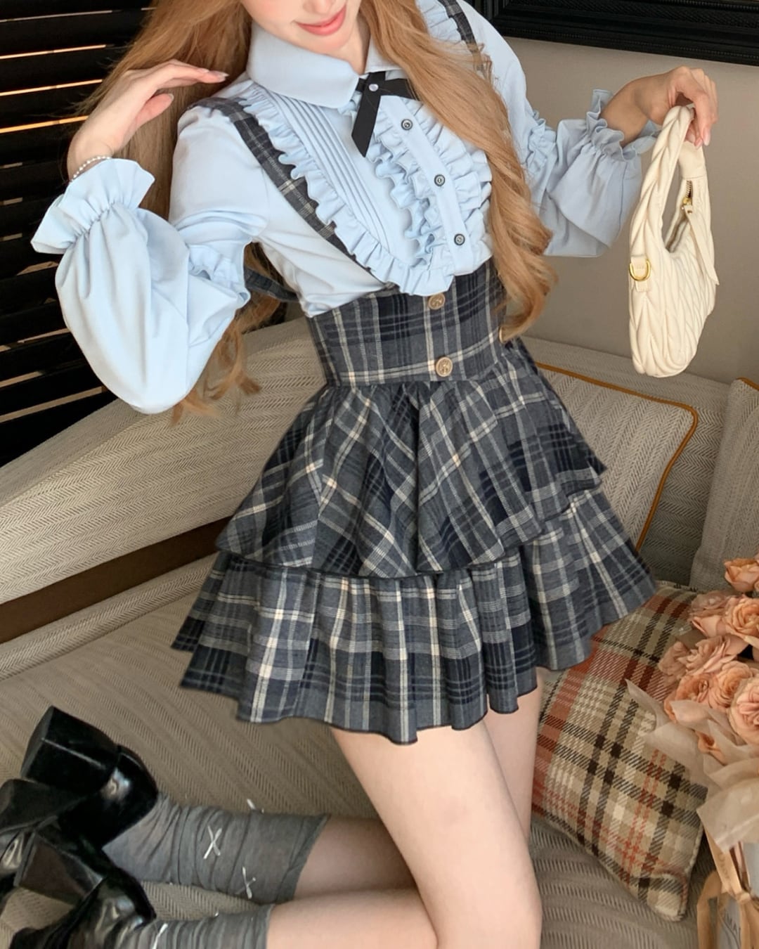 フロントにあしらったフリルとリボンタイがポイントのブラウス♡
