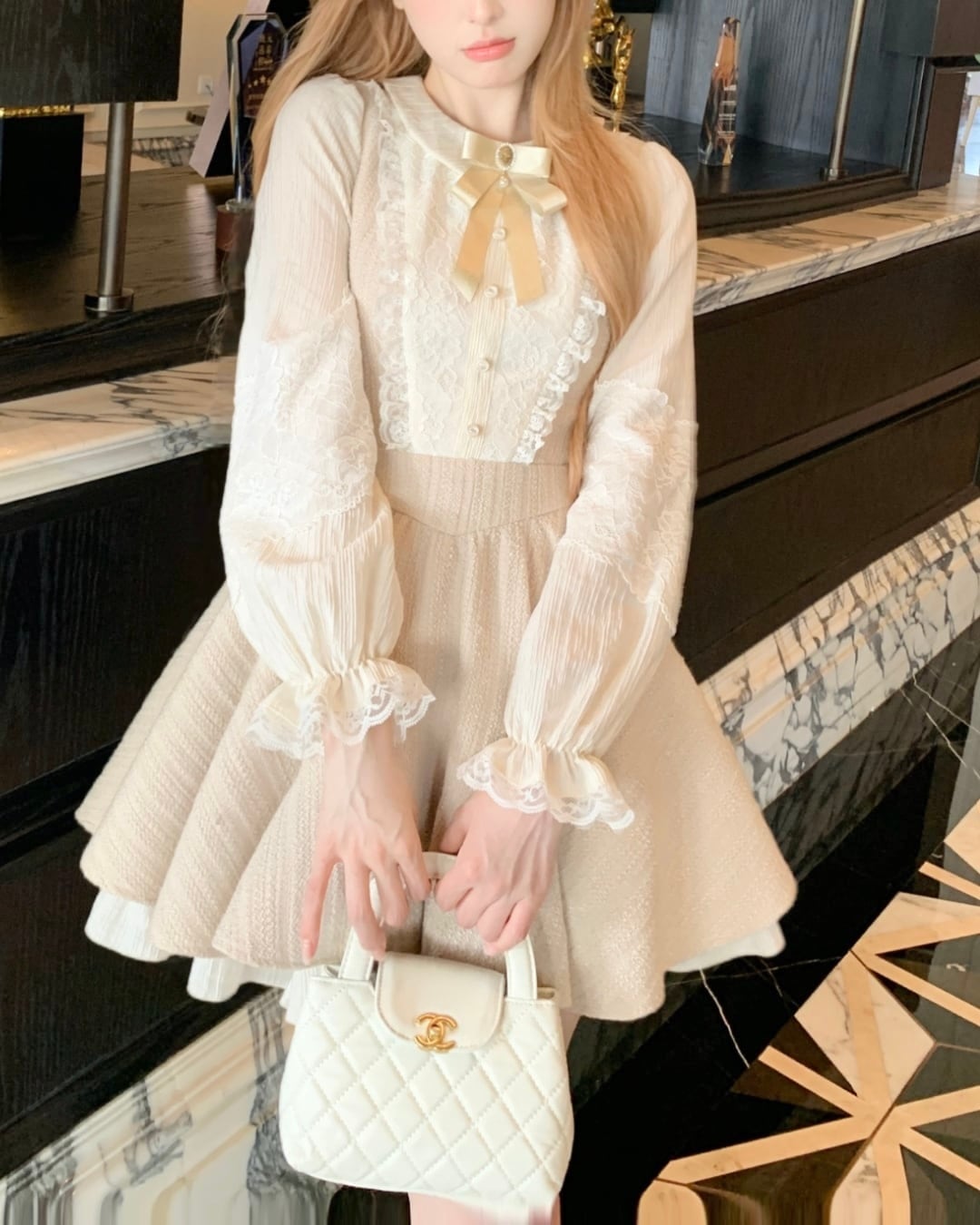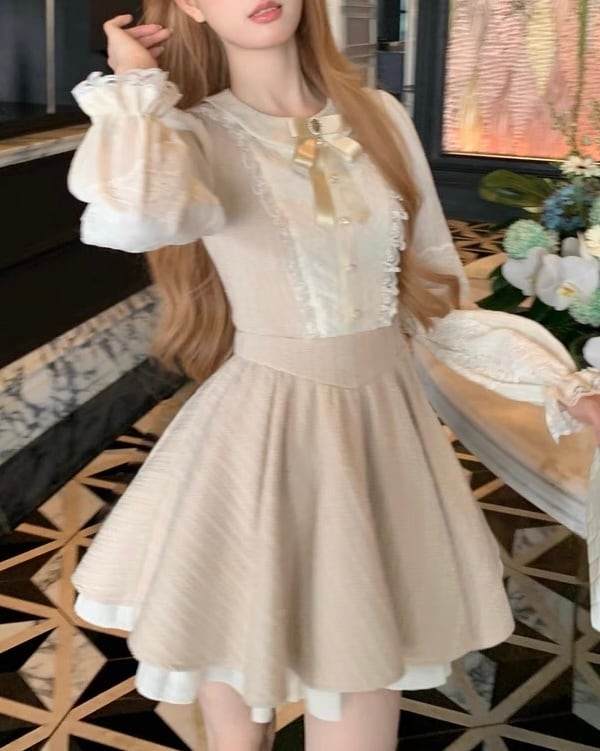 ボリューム袖にレースをあしらった、クラシカルなガーリーワンピース♡