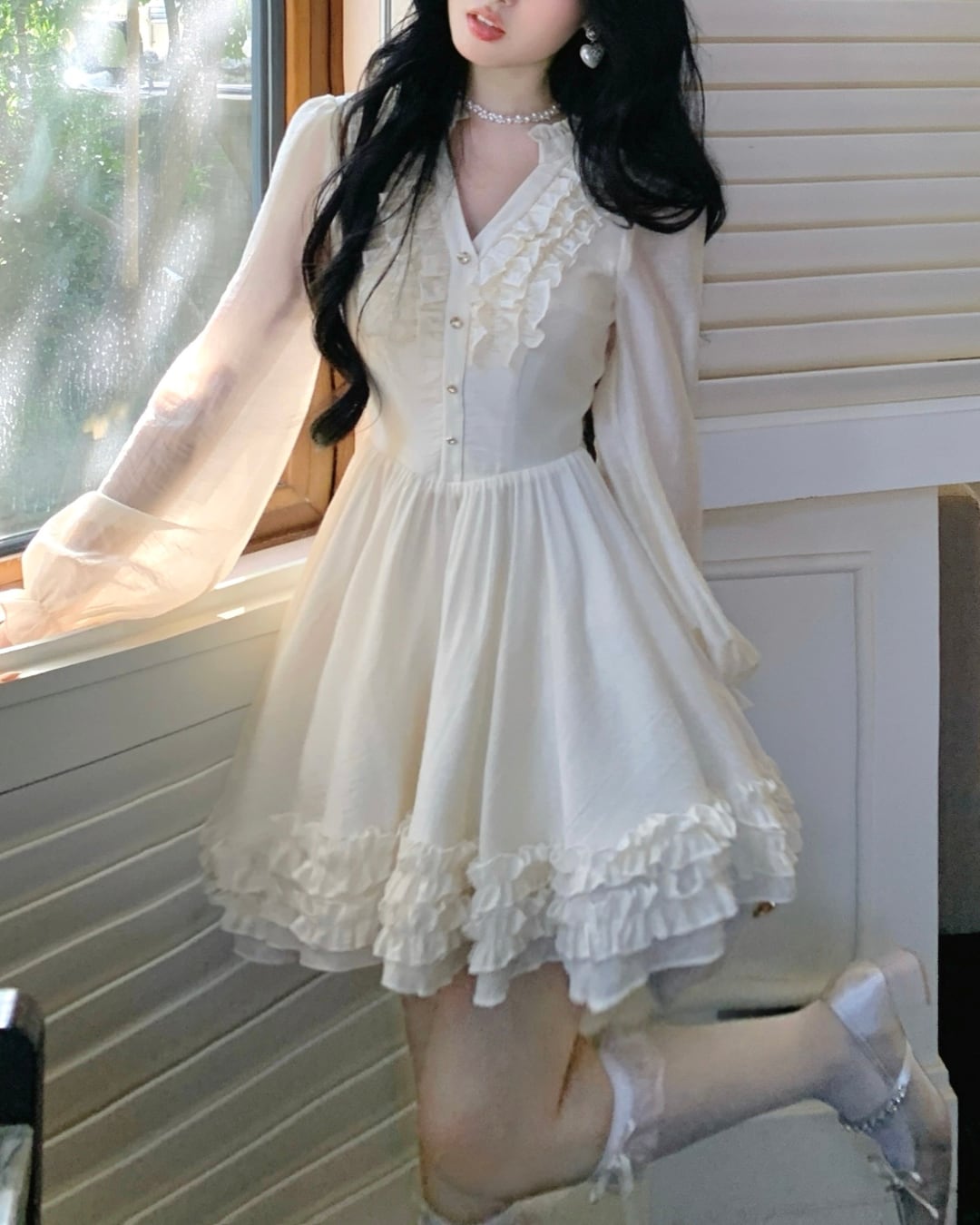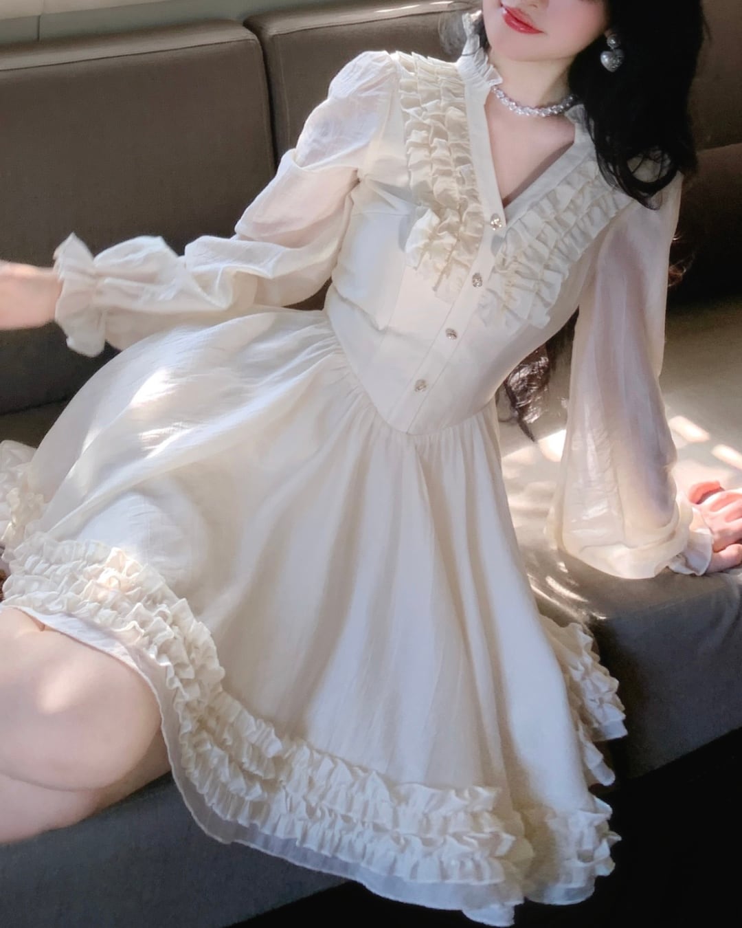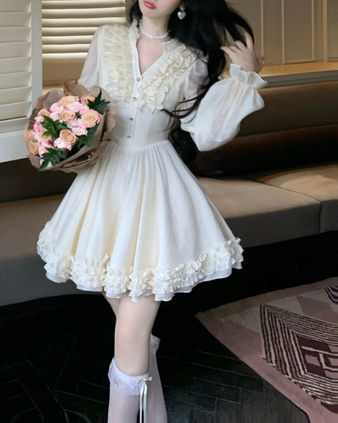ボリューム袖にレースをあしらった、クラシカルなガーリーワンピース♡