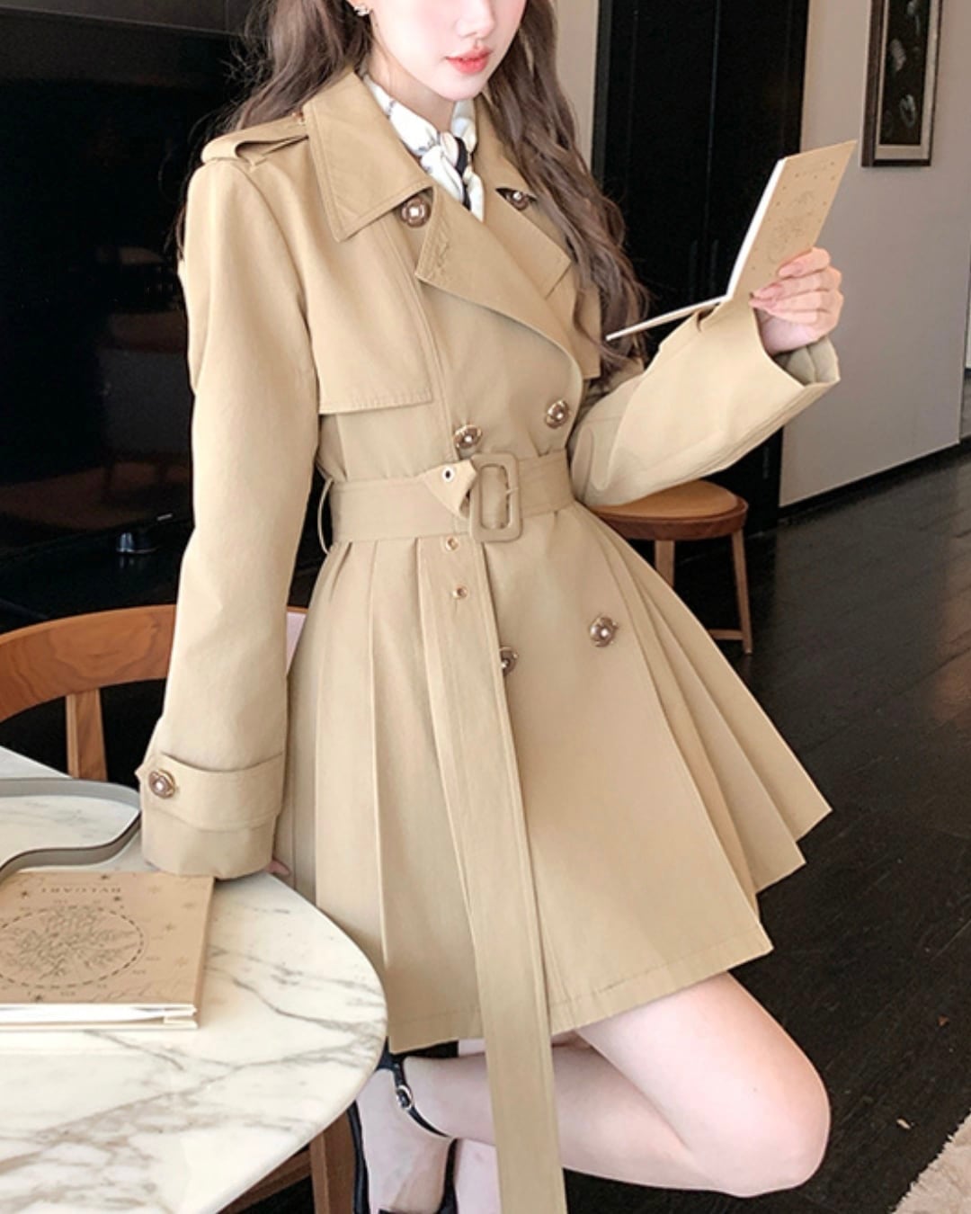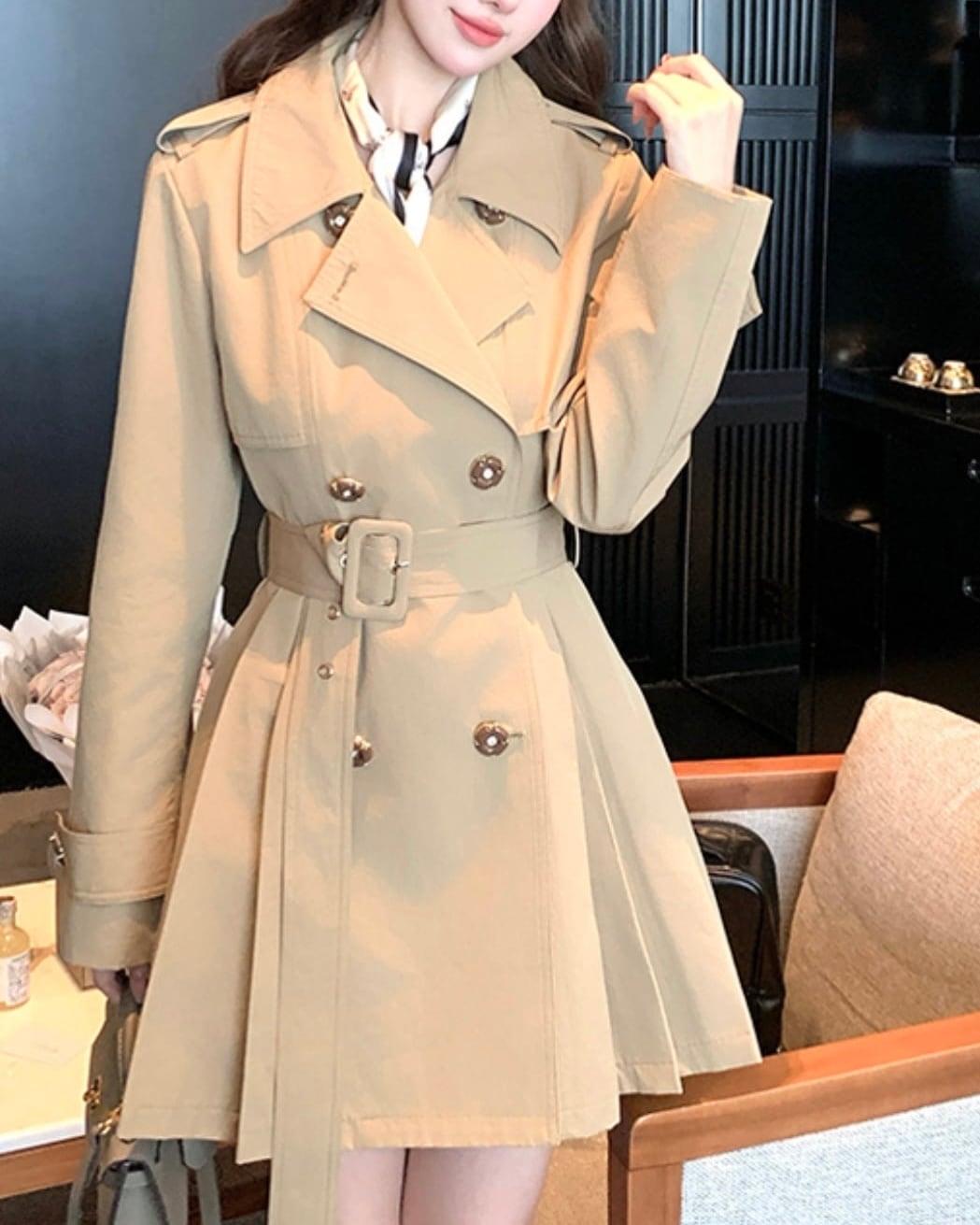 プリーツフレアミディトレンチコート 25WP08085