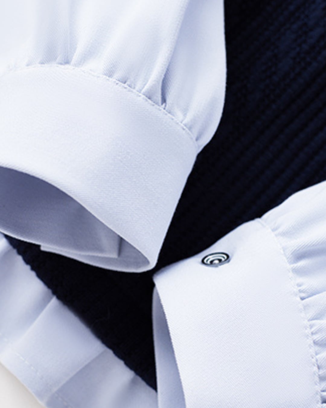 胸元のリボンタイとゴールドボタンがクラシカルな雰囲気を演出し、一枚でコーデを格上げしてくれます✧˖°