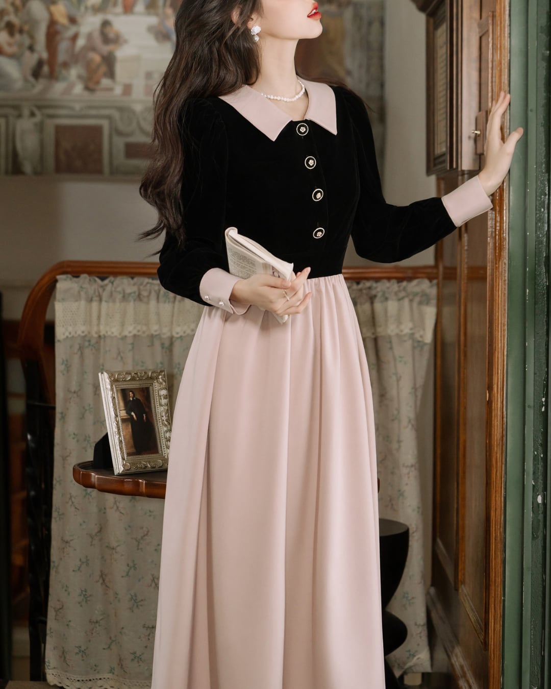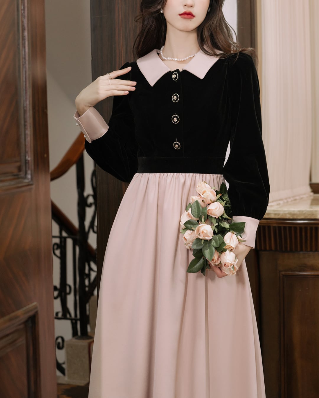 上品なバイカラー配色が目を惹くクラシカルワンピース✧˖°