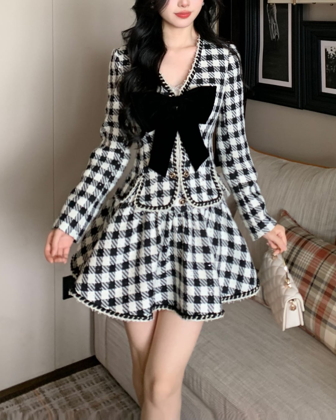 ベロアリボンチェックガーリーセットアップ 25W08149