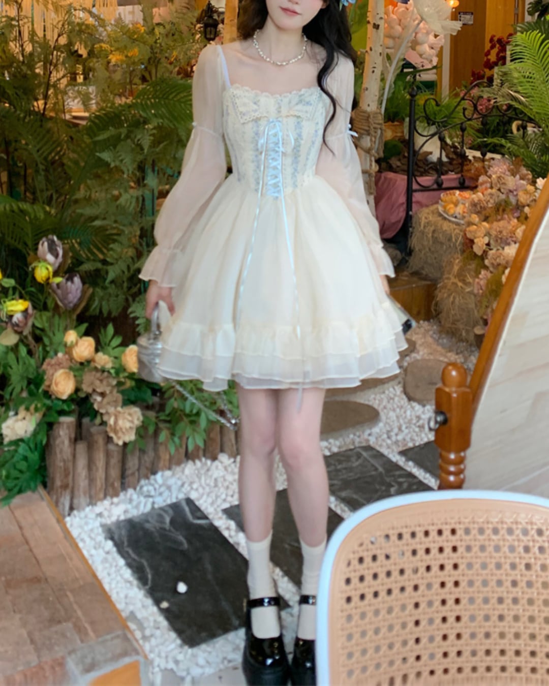袖の透け感やふんわり広がるスカートがとびきりガーリーな雰囲気に