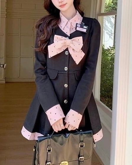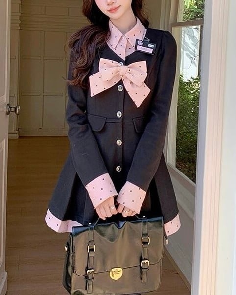 スクールガール風のデザインにドット柄リボンを添えた、目を引くデザインが魅力♡
