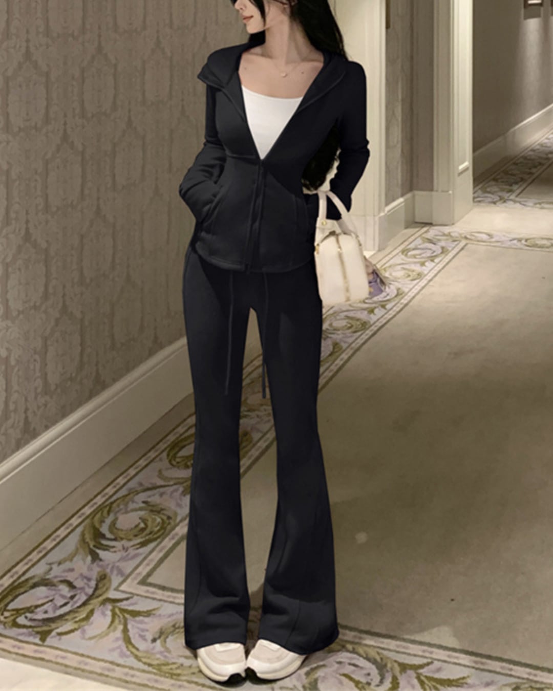 脚長効果のあるセミフレアパンツがセットになった一着♡