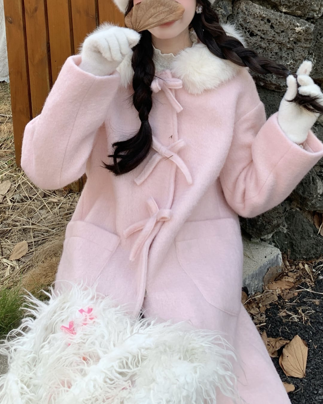 もこもこの質感と大きなリボンが印象的な、ガーリー感たっぷりのフーディーコート♡