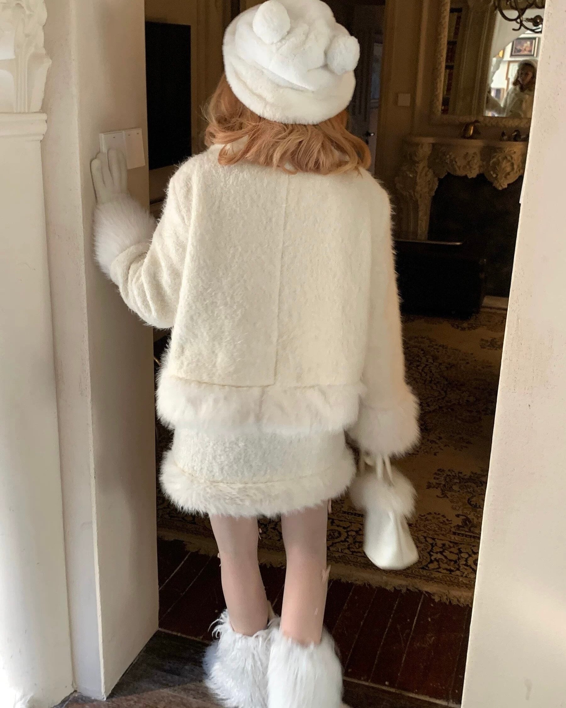 ホワイトドールファージャケット&スカートセットアップ 25W08184