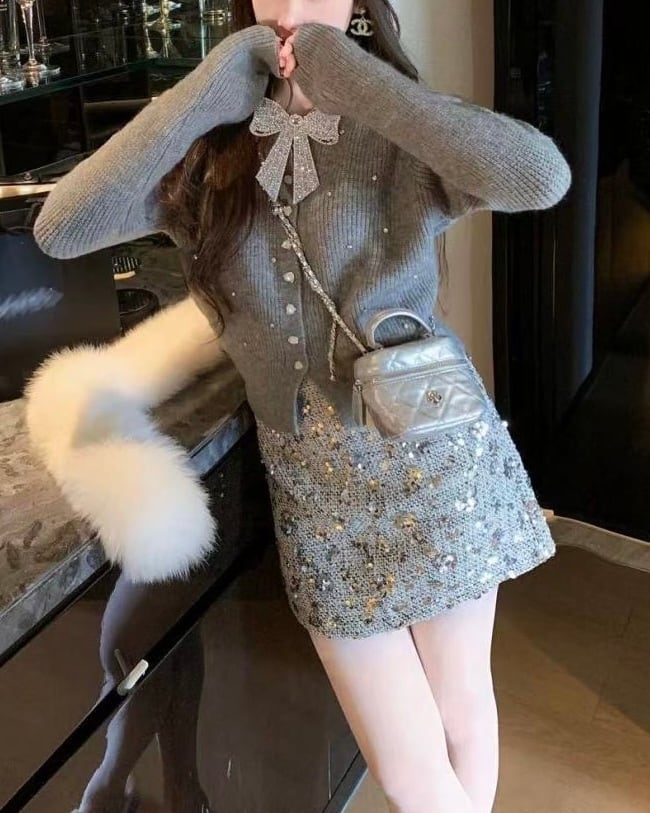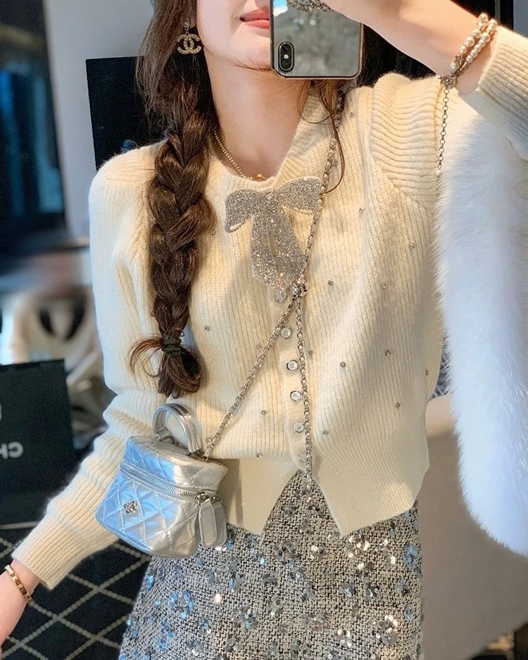 やさしいキラめきのグリッター素材が大人可愛い印象を叶えてくれるカーディガンです♡
