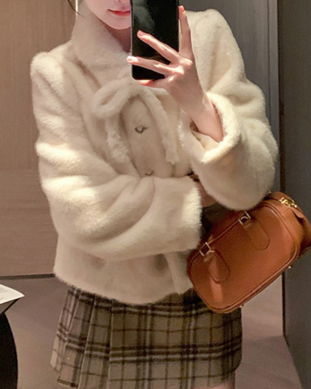 リボン付きスタンドカラーでガーリーな雰囲気を演出♡