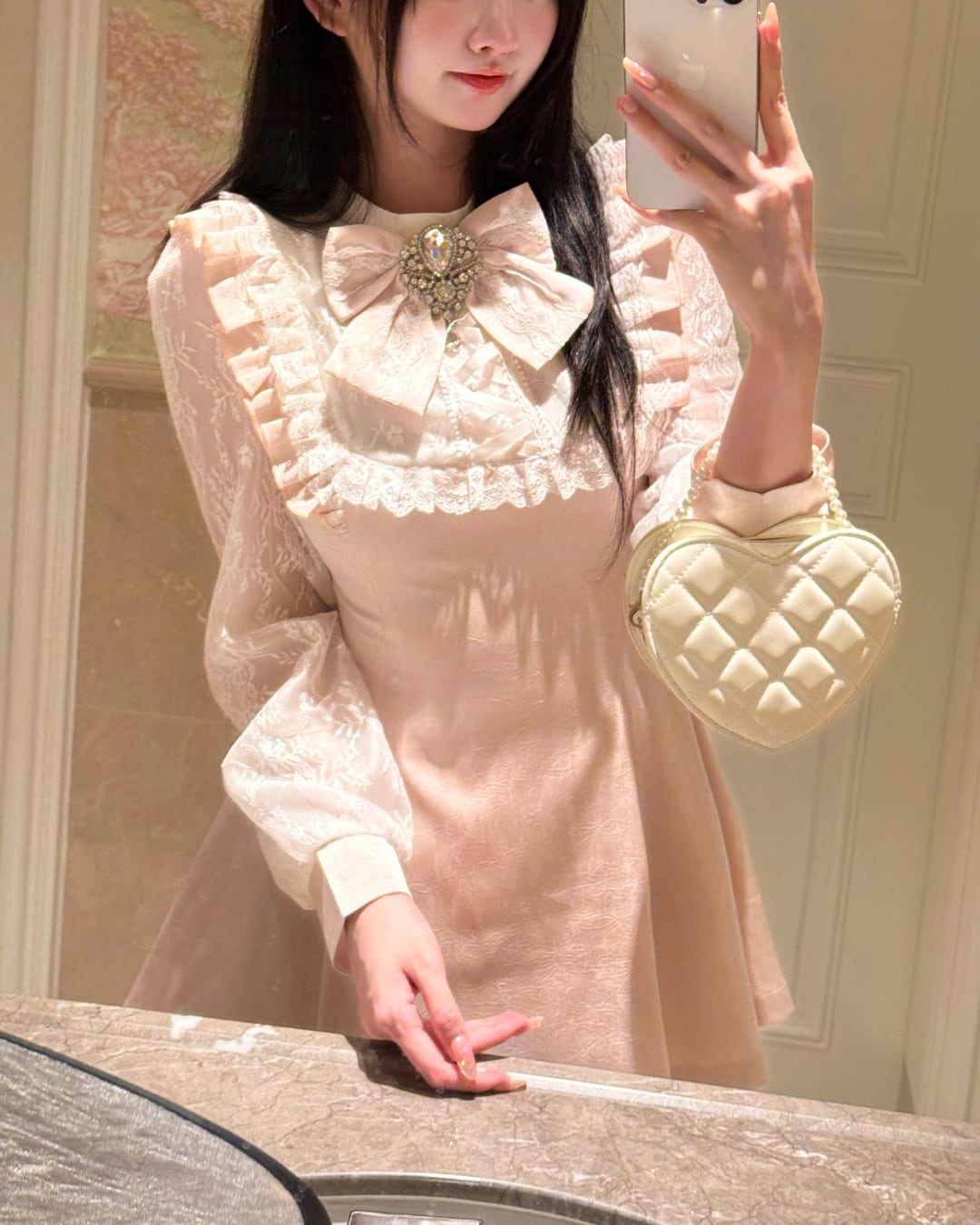 レースとビジューとリボンが華やかで、可愛らしさをしっかり引き立ててくれるワンピース♡