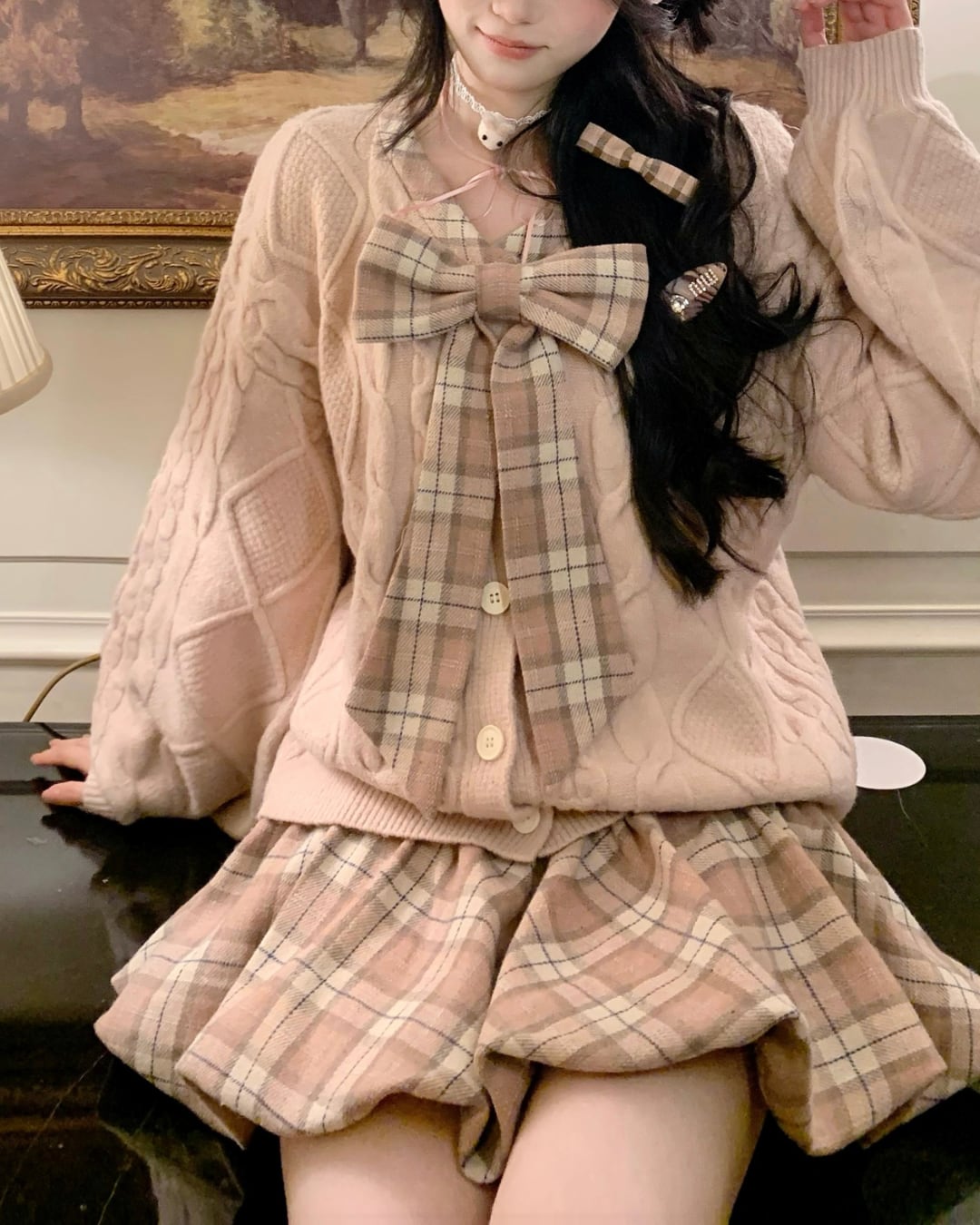 ふんわりと広がるバルーンシルエットが愛らしいチェック柄スカート♡