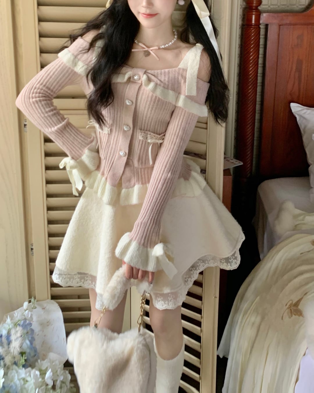 ふわふわの厚手素材で仕立てた、優しげなホワイトフレアスカート♡