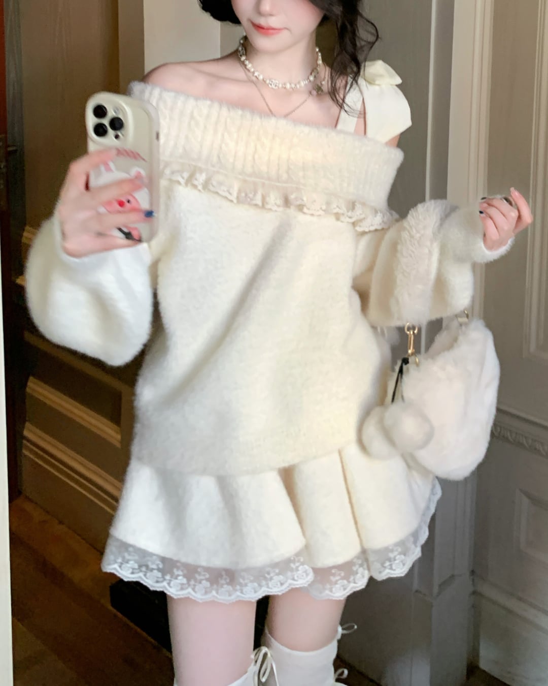 ふんわり柔らかな素材感が魅力の、ワンショルダーデザインニット♡