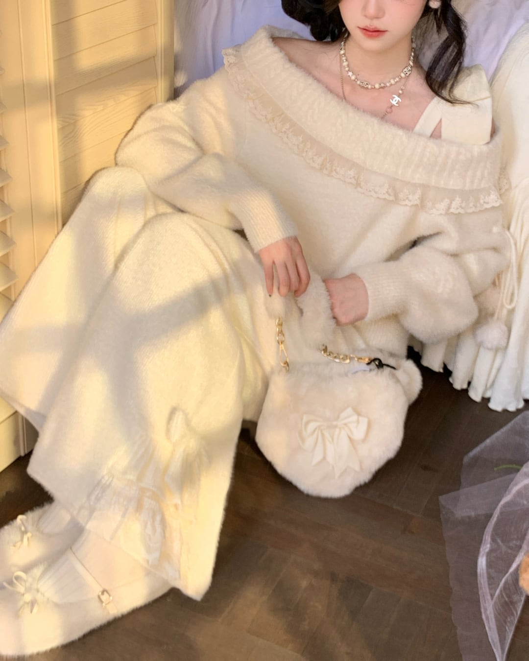 ワンショルダーホワイトソフトニットトップス 25W08238
