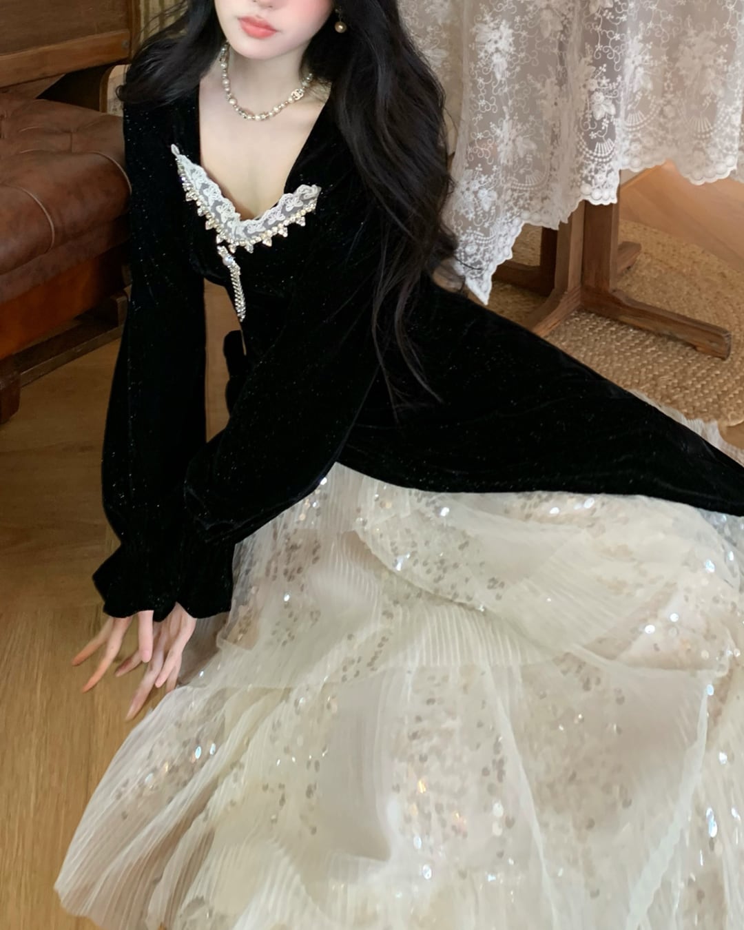 ふんわりチュールに繊細なスパンコールを散りばめた