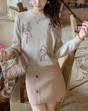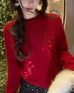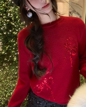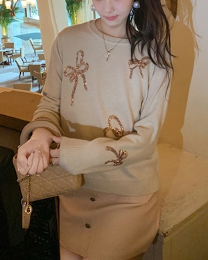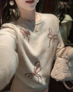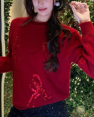 スパンコールシャイニーリボンニットトップス(2 colors) 25W08258