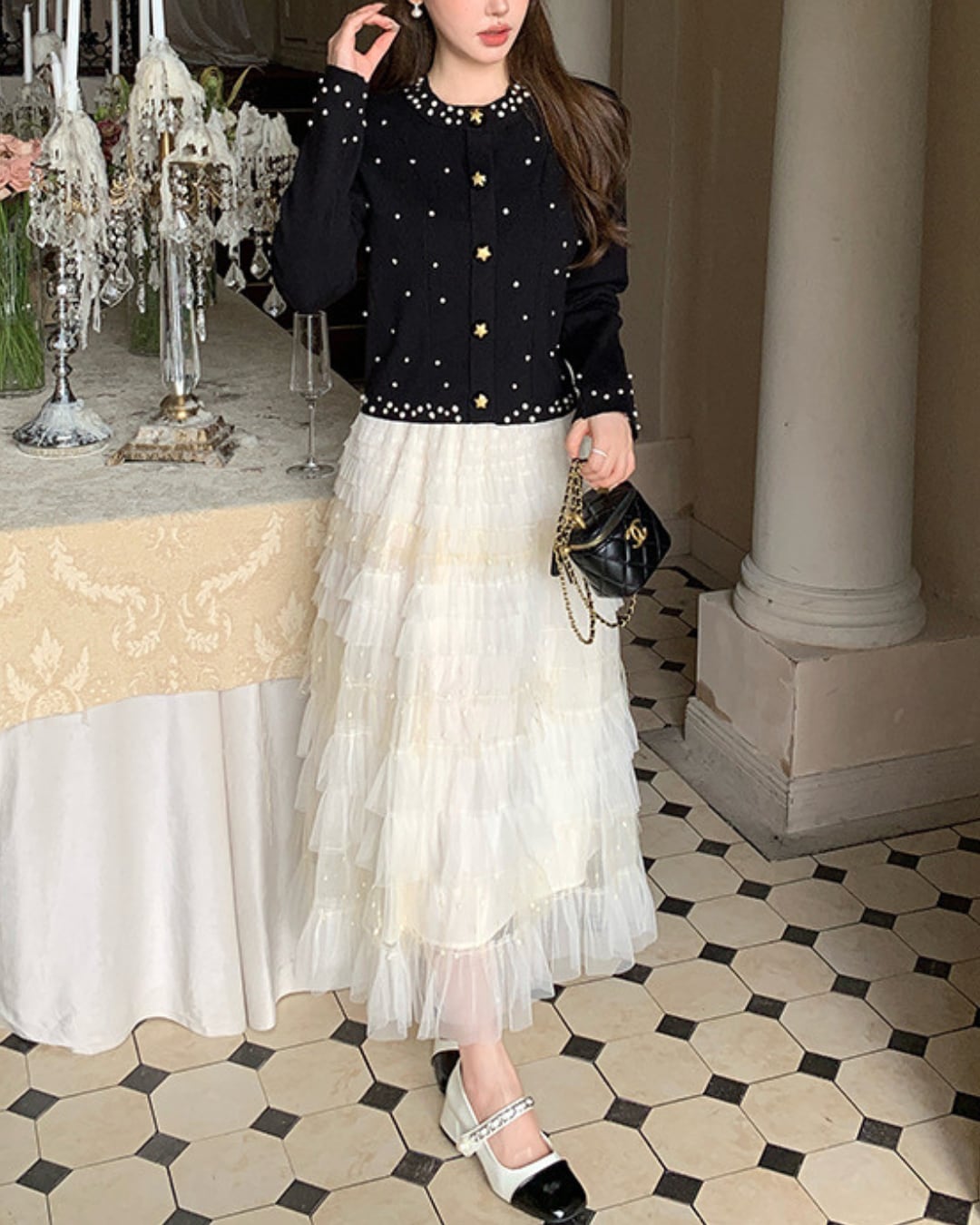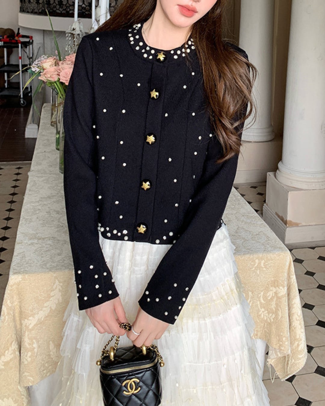 星型ボタンとパール×ビジューが散りばめられた華やかな一枚♡
