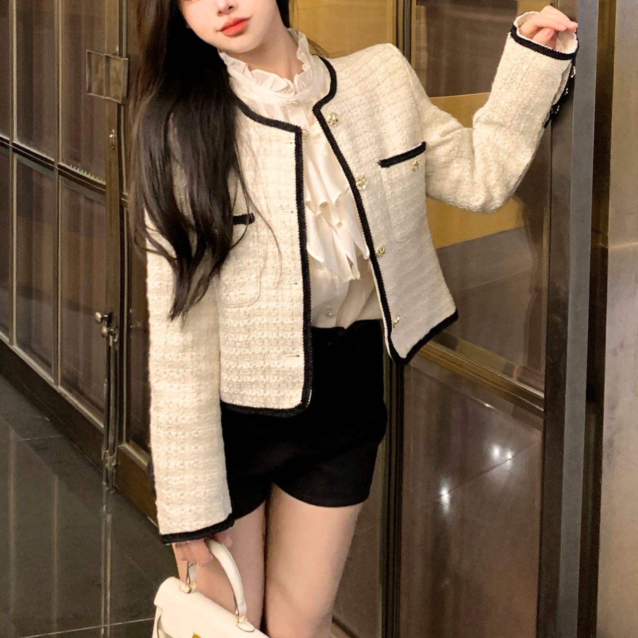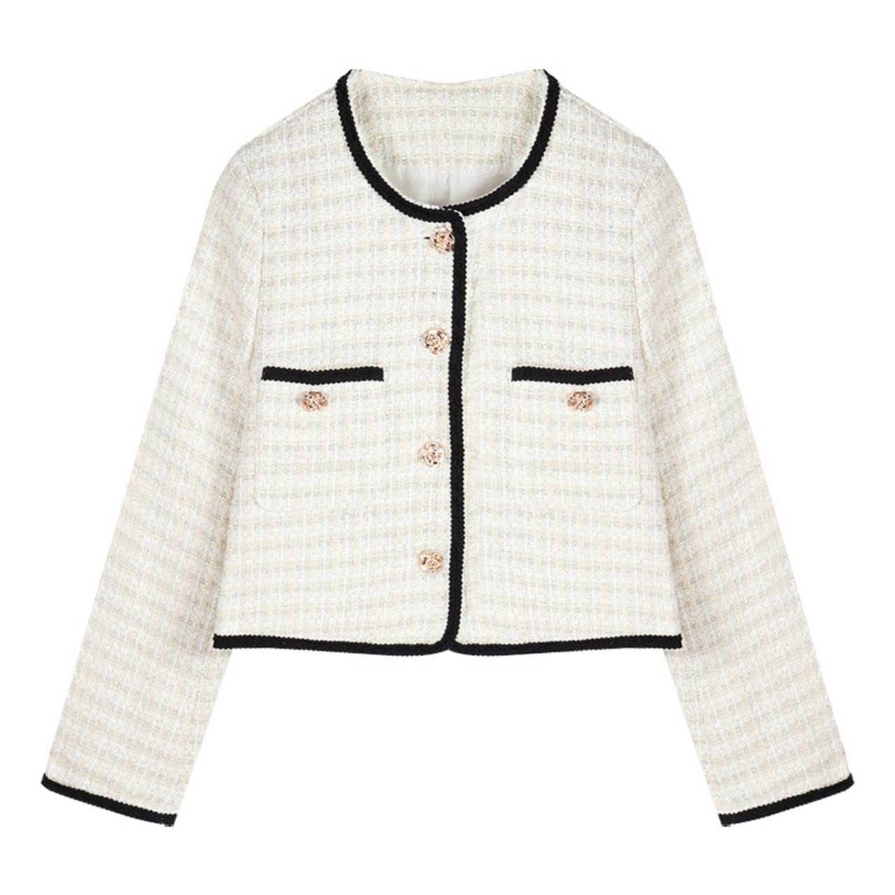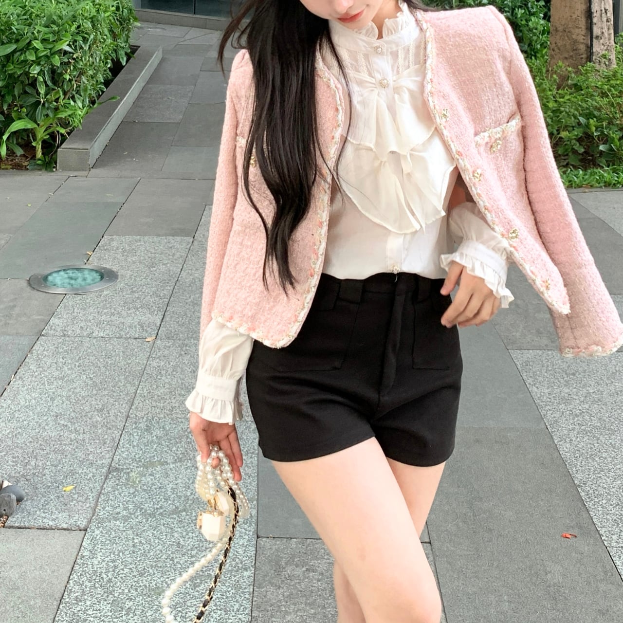 【♡お届け約1週間♡ Mサイズ ピンク1点のみ】パイピングフラワーボタンツイードジャケット