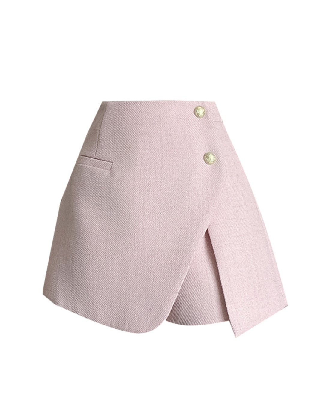 ゴールドボタンがポイントになった、アシンメトリーデザインのキュロットスカート♡