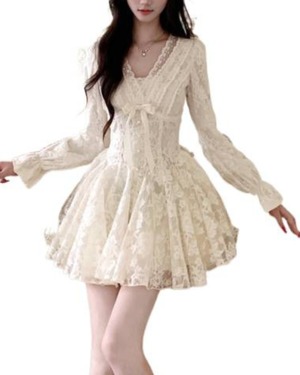 繊細な総レースに包まれた、可憐なリボン付きデザインが魅力のワンピース♡