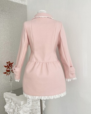 ガーリーなピンクカラーに、レースの縁取りが上品さを添えるミディ丈コート♡