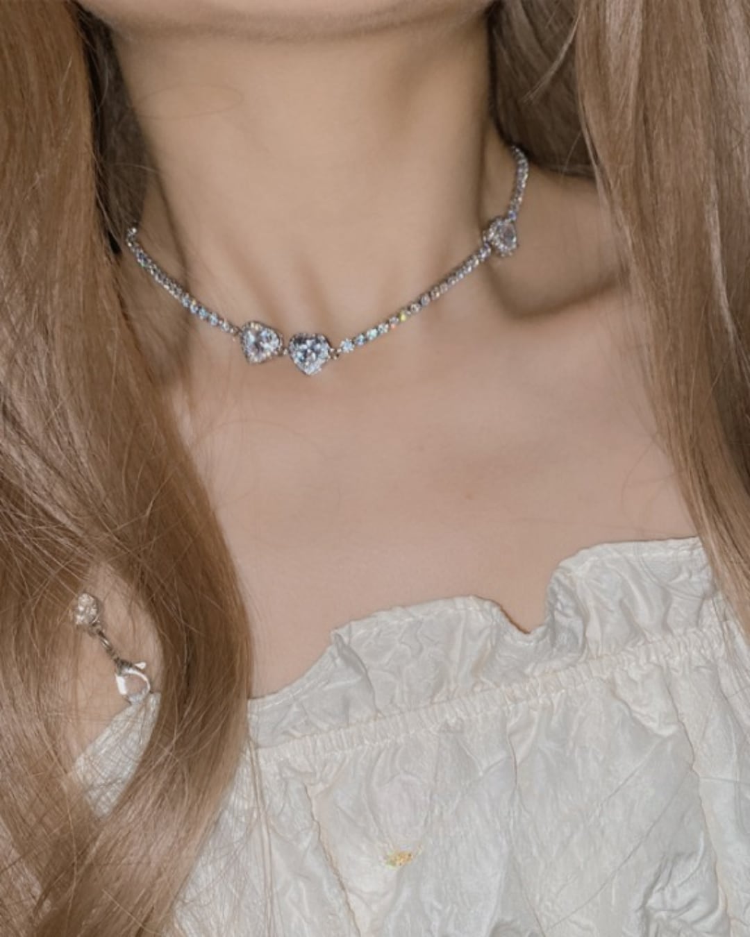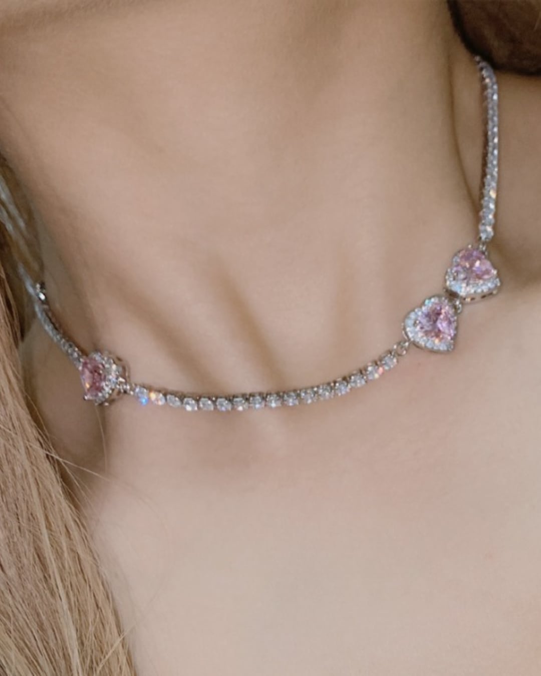 ダブルハートビジューネックレス(2 colors) 25W08300