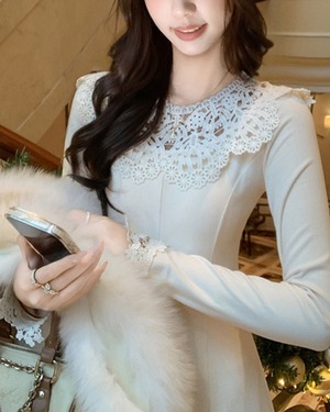 繊細なレースディテールが目を惹くショート丈ワンピース♡